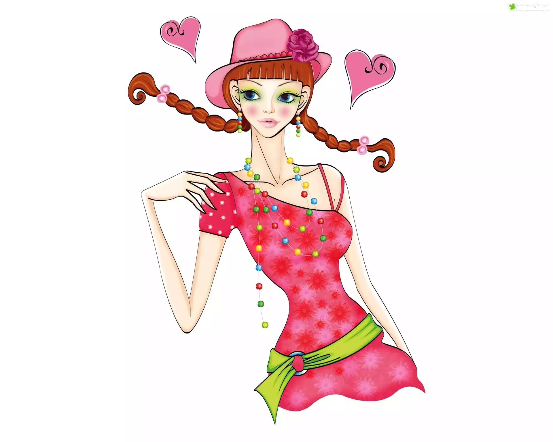 Zdjęcie Młoda, Kobieta, Warkoczyki, Kapelusz