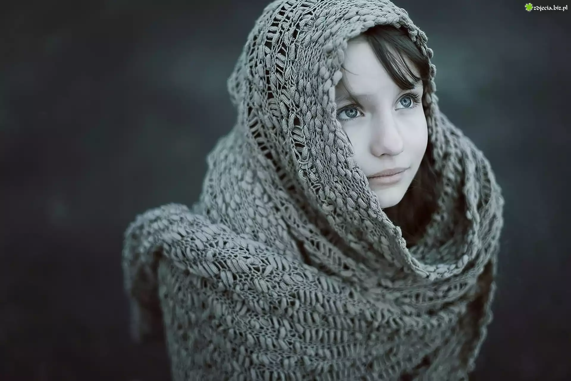 Zdjęcie Młoda, Kobieta, Wełniany, Szal