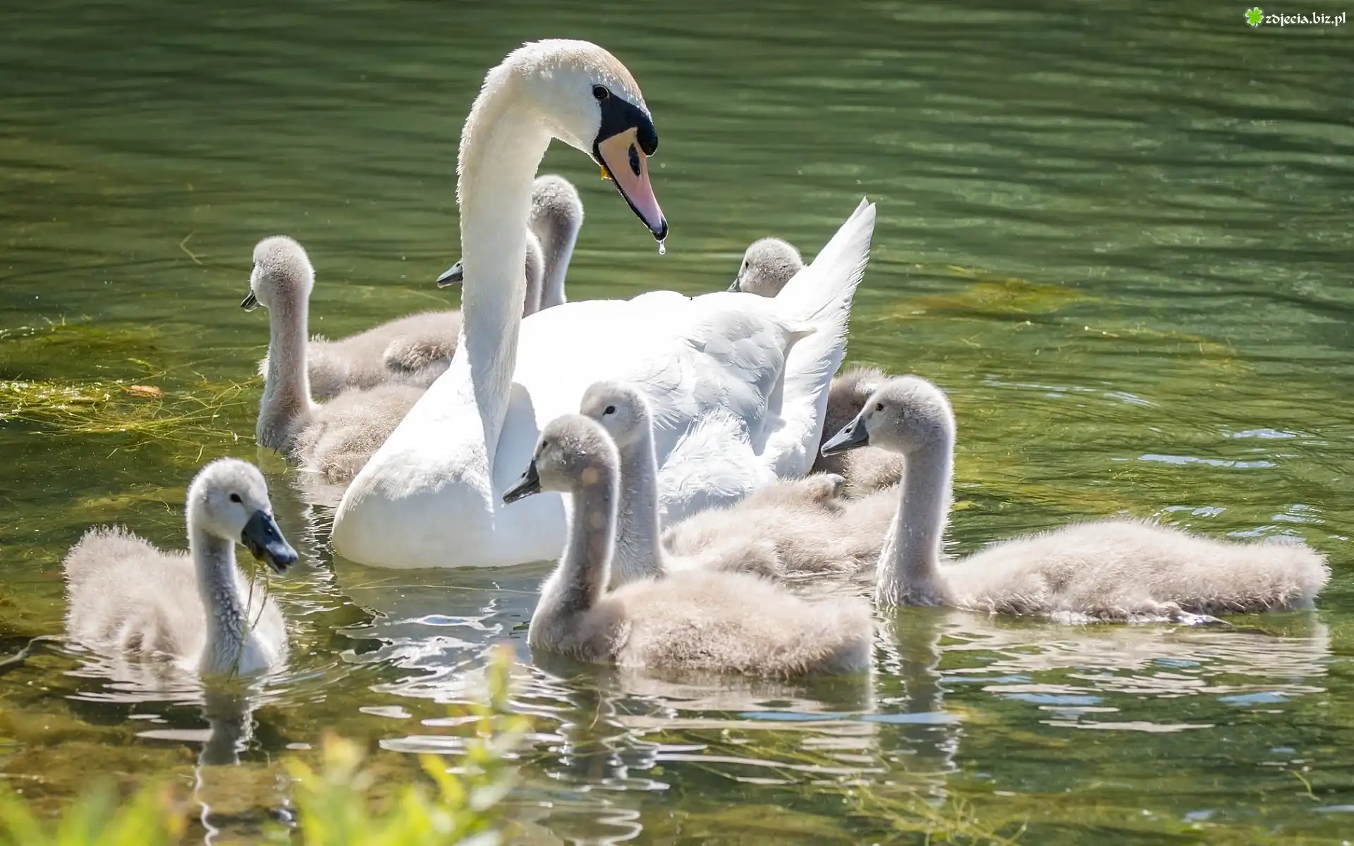 Zdjęcie Łabędzie, Młode, Woda