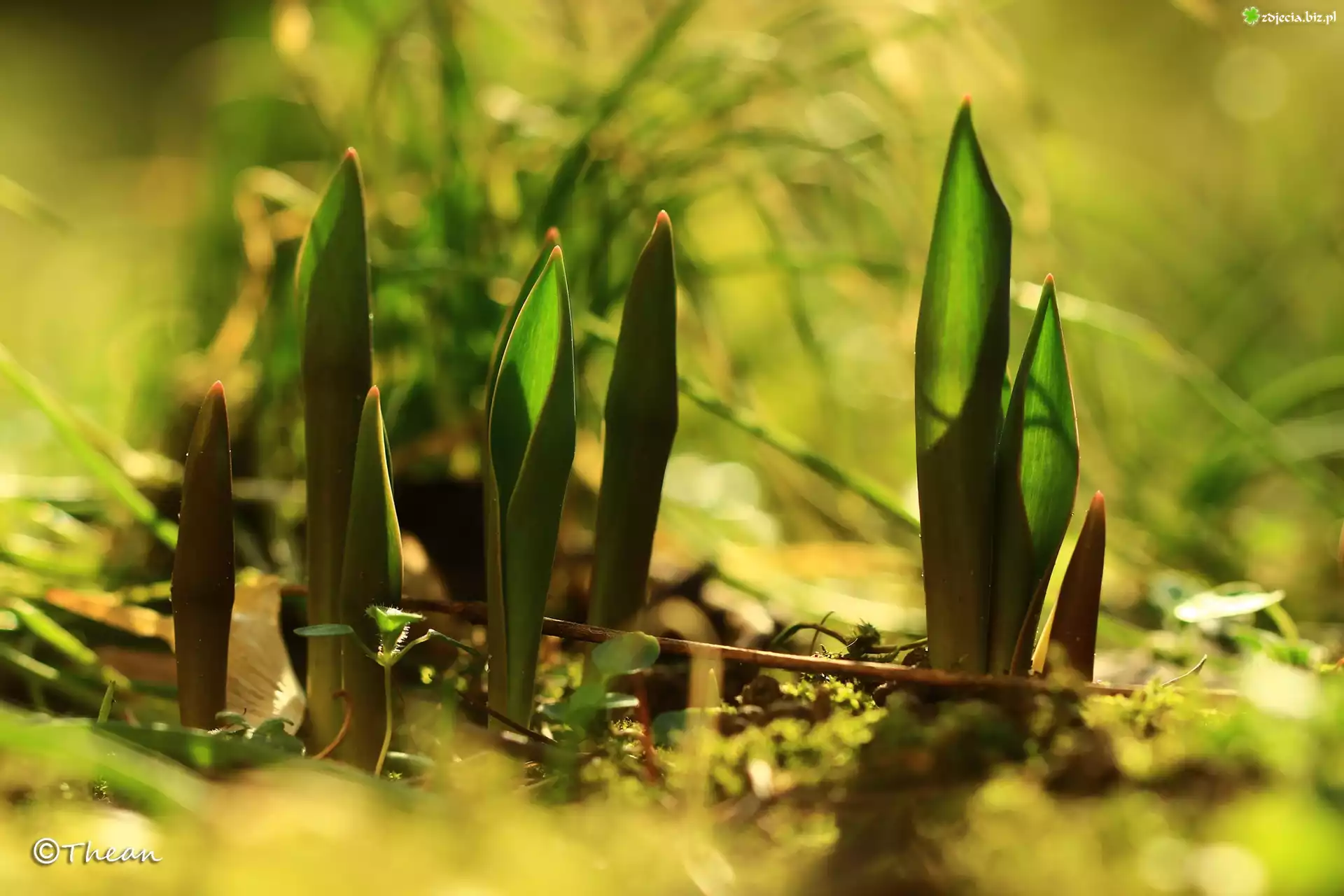 Zdjęcie Młode, Liście, Tulipanów, Wiosna