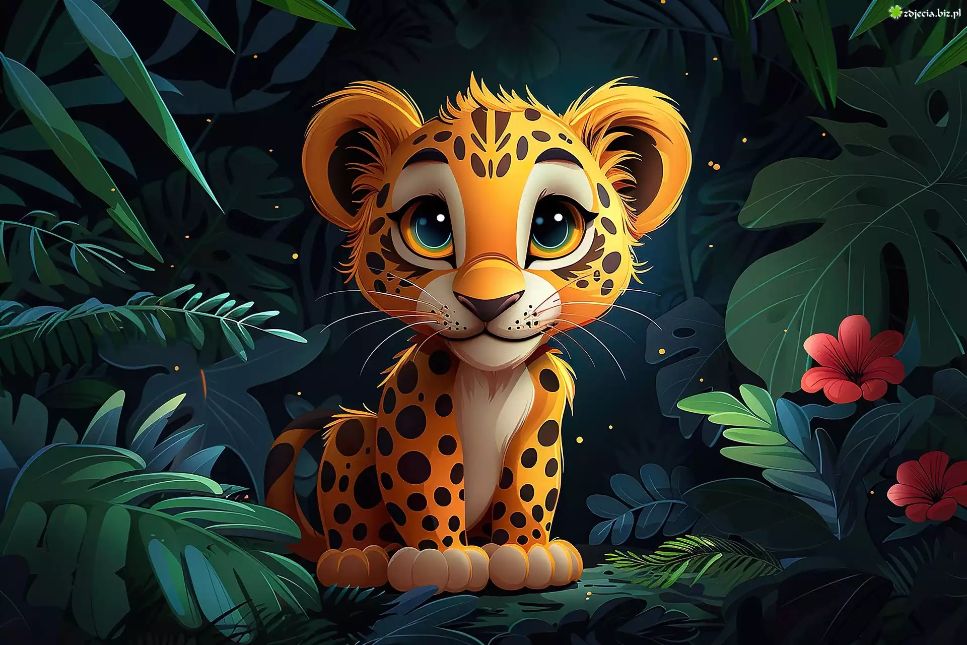 Zdjęcie Lampart, Młody, Liście, Dżungla, Grafika
