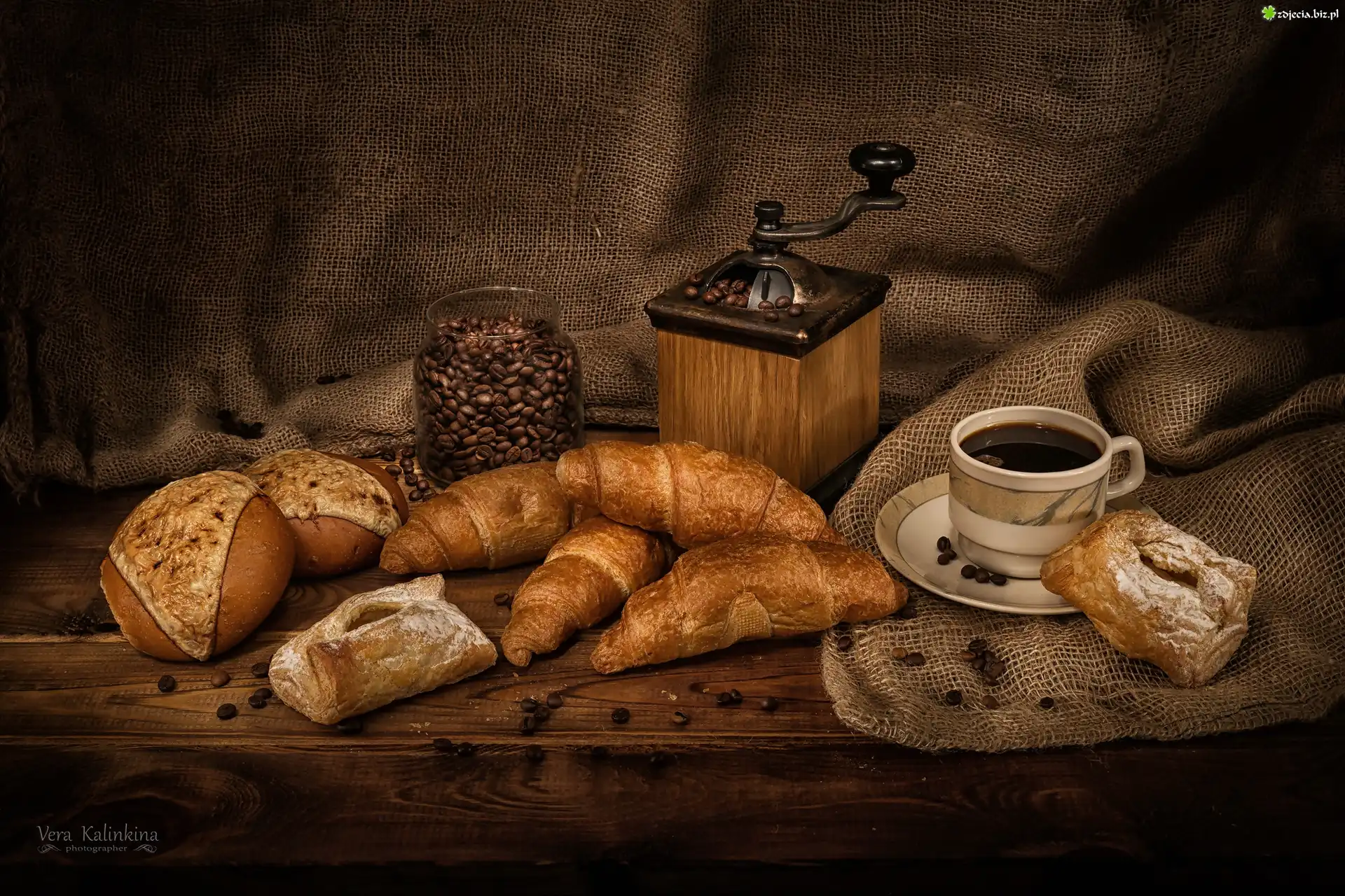 Zdjęcie Młynek, Kawa, Filiżanka, Pieczywo, Bułki