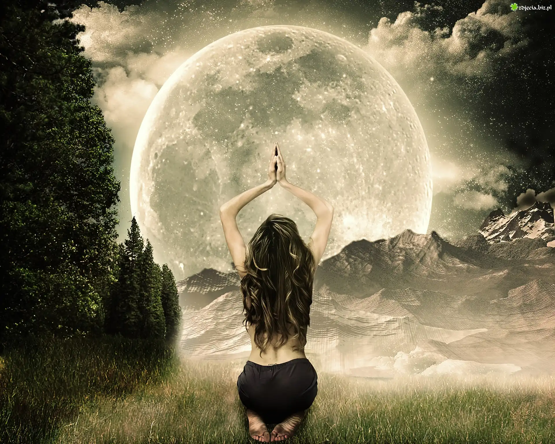 Zdjęcie Kobieta, Modlitwa, Księżyc