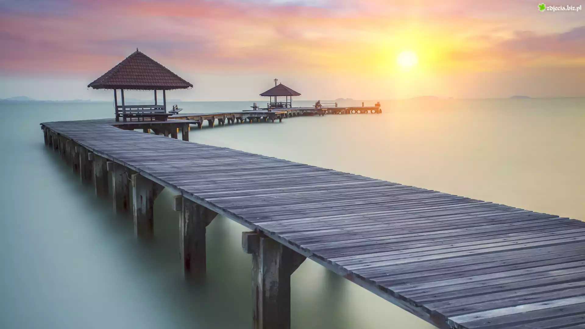 Zdjęcie Molo, Morze, Mgła, Wschód, Słońca