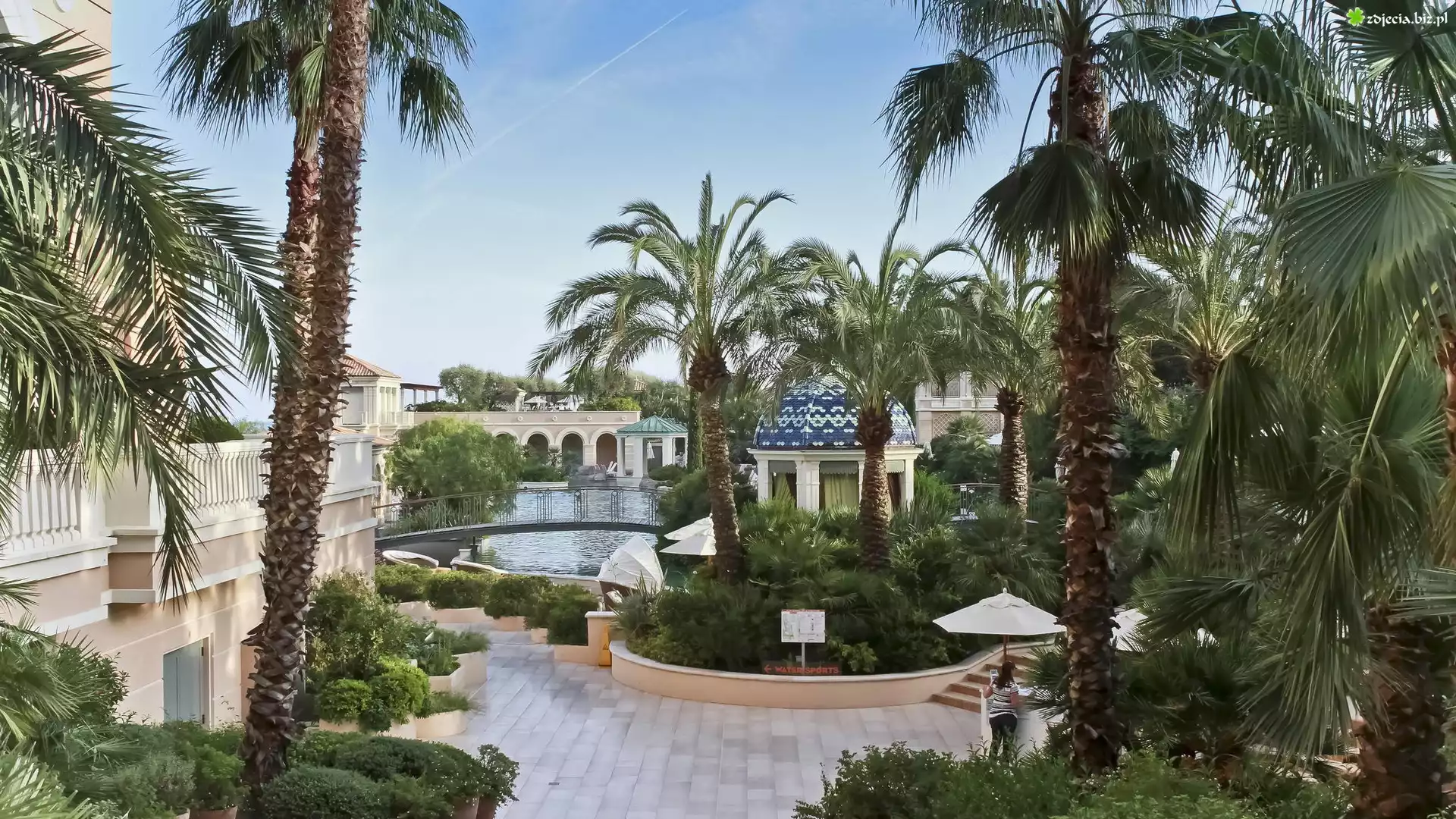 Zdjęcie Monako, Hotel, Monte Carlo, Palmy, Dziedziniec, Basen, Parasole, Altana