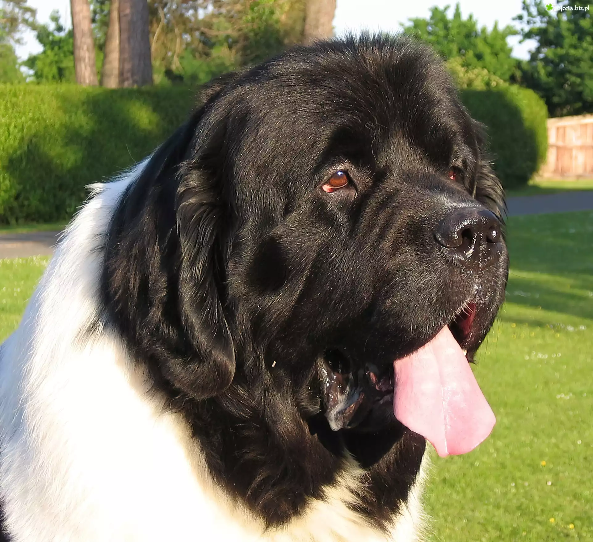 trzy, Landseery Landseer, zielona, trawa morda, Landseera biało-czarny, Landseer Piesek, Łąka słodkie, szczeniaki, Landseery