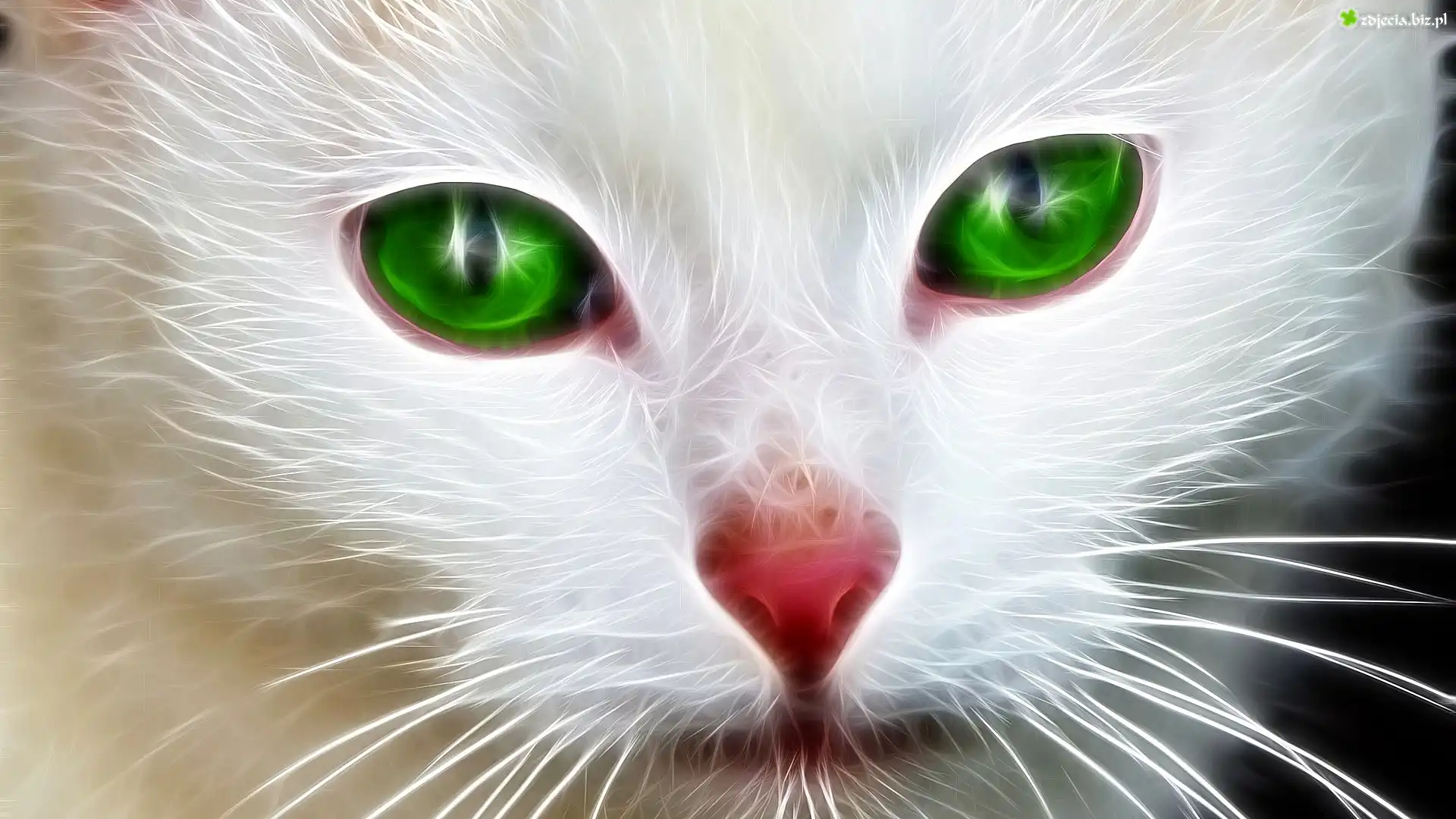 Zdjęcie Kot, Mordka, Czerwony, Nos, Zielone, Oczy, Fractalius