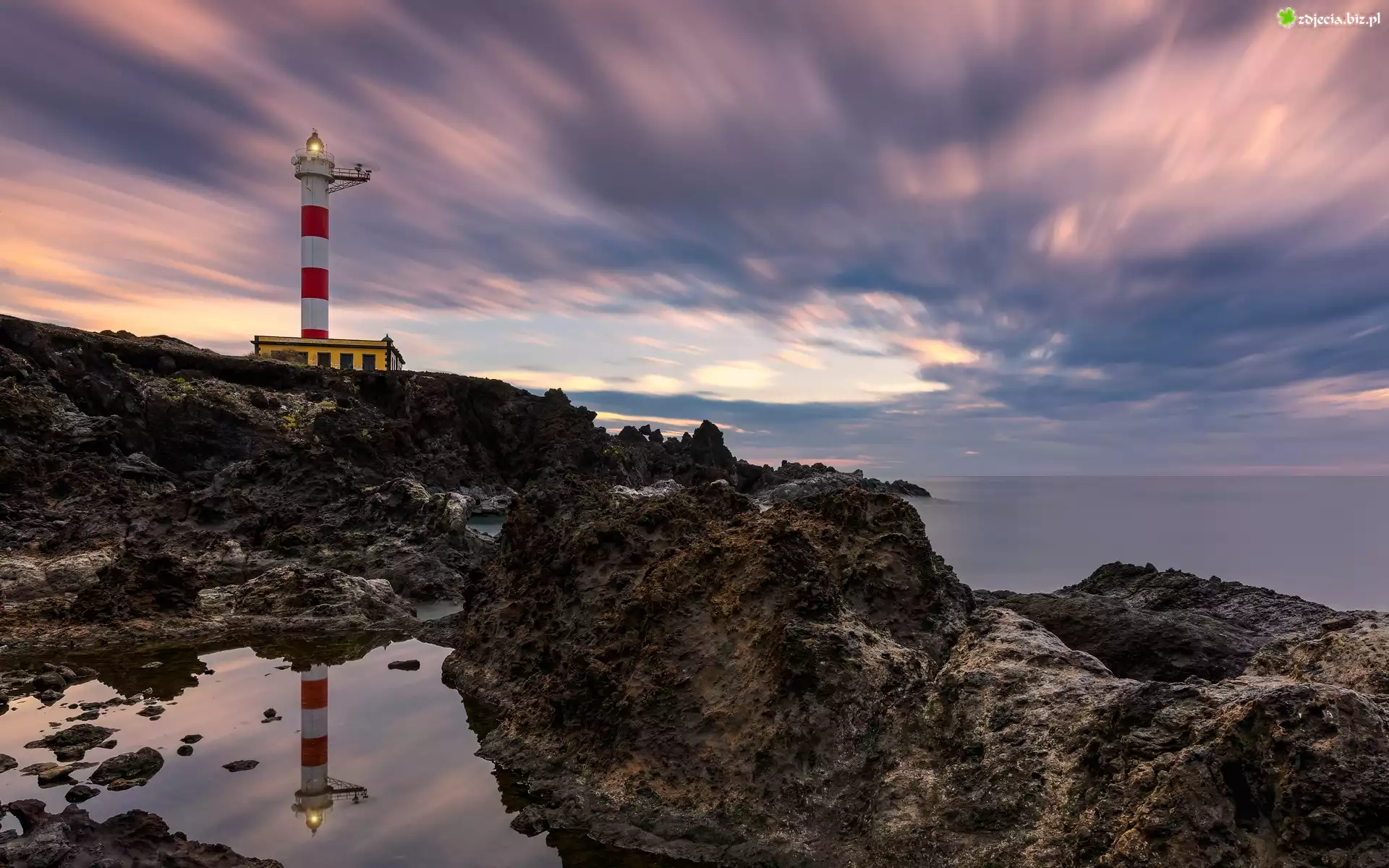 Zdjęcie Hiszpania, Teneryfa, Morze, Skały, Wybrzeże, Latarnia morska, Faro Punta de Rasca
