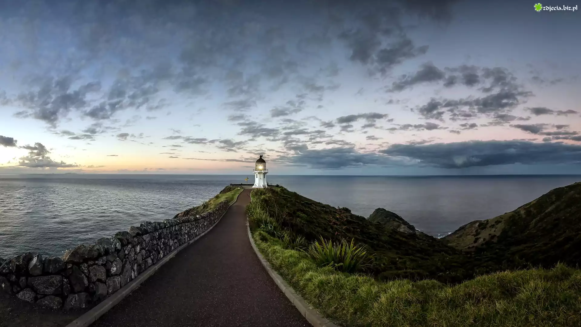 Zdjęcie Nowa Zelandia, Wyspa Północna, Latarnia morska Cape Reinga Lighthouse, Droga, Morze, Niebo