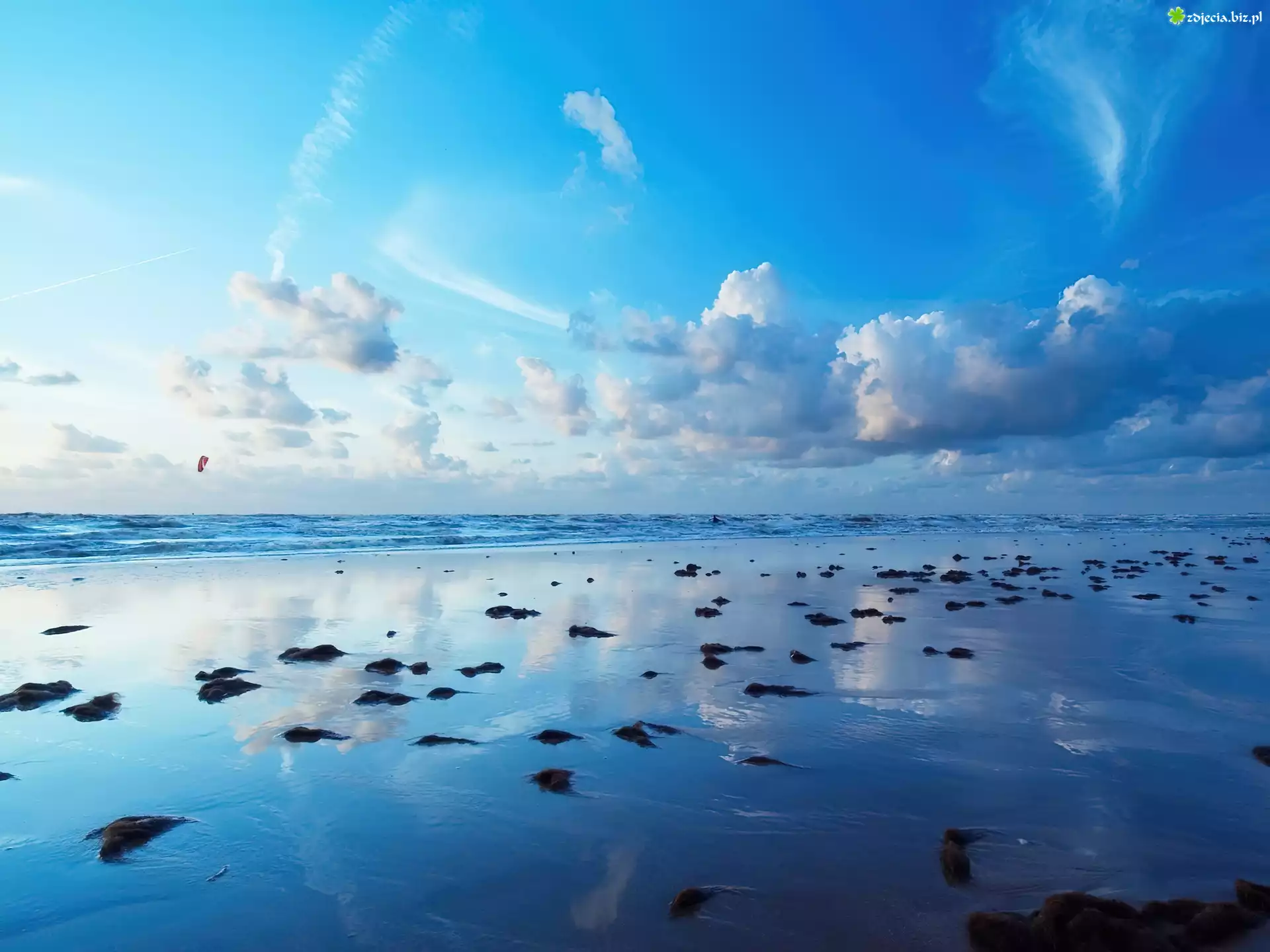 Zdjęcie Morze, Wodorosty, Błękitne, Niebo