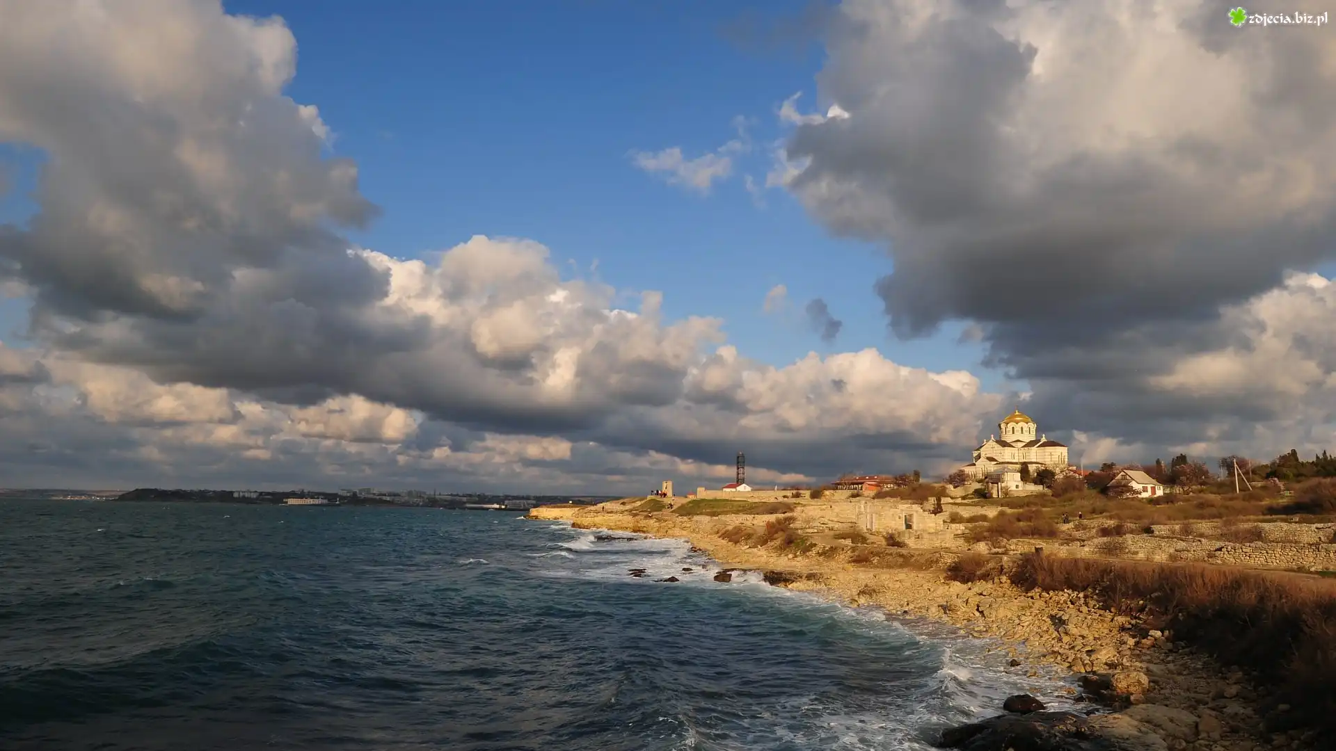 Zdjęcie Morze, Brzeg, Chmury, Cerkiew, Krym