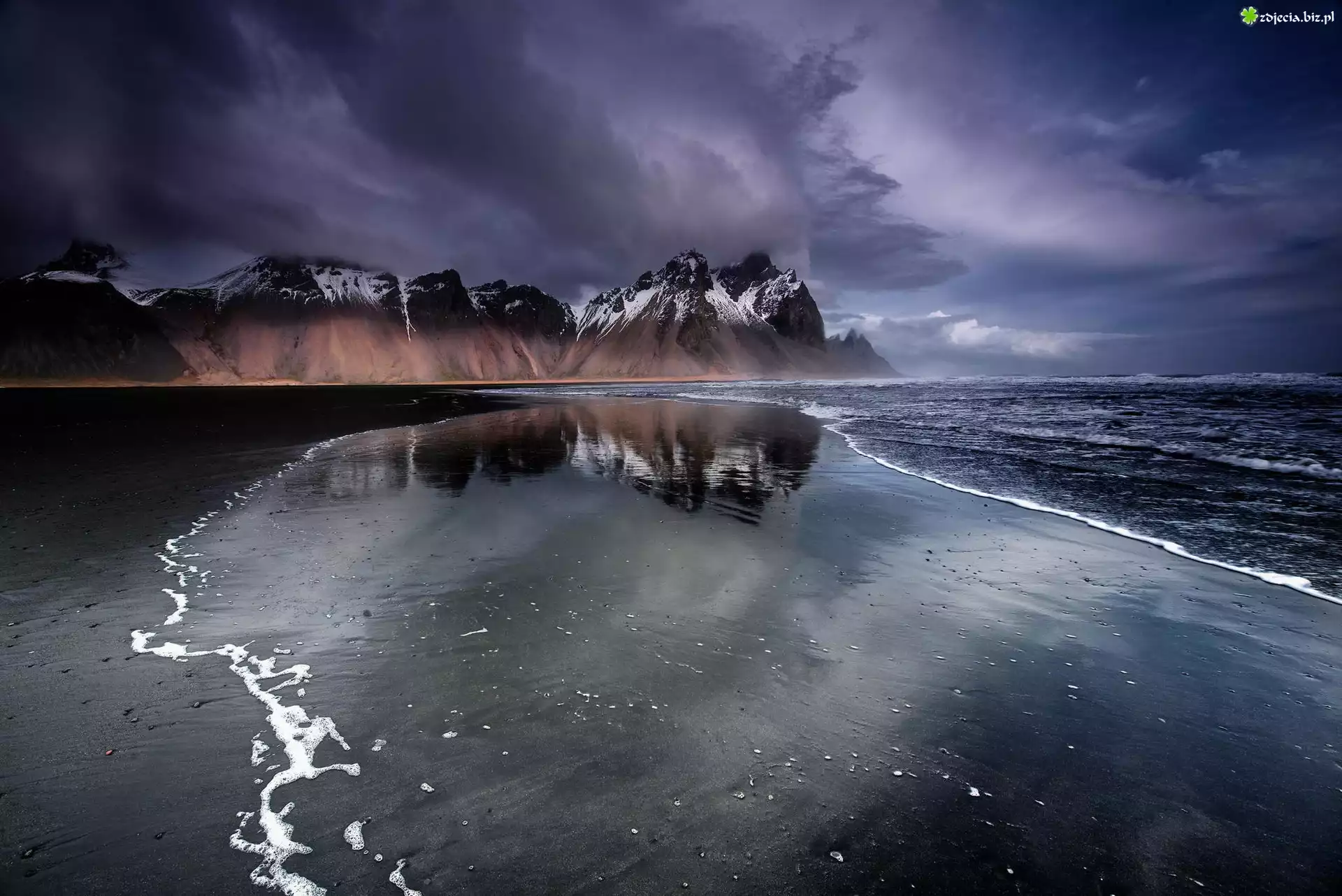 Zdjęcie Morze, Brzeg, Ciemne, Chmury, Góry