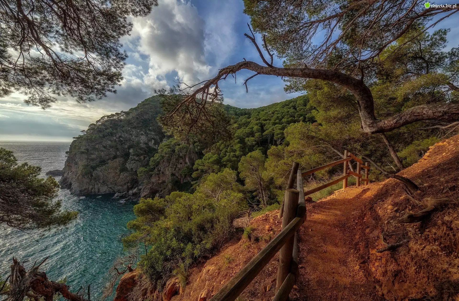 Zdjęcie, Morze, Wzgórza, Drzewa, Ścieżka, Ogrodzenie