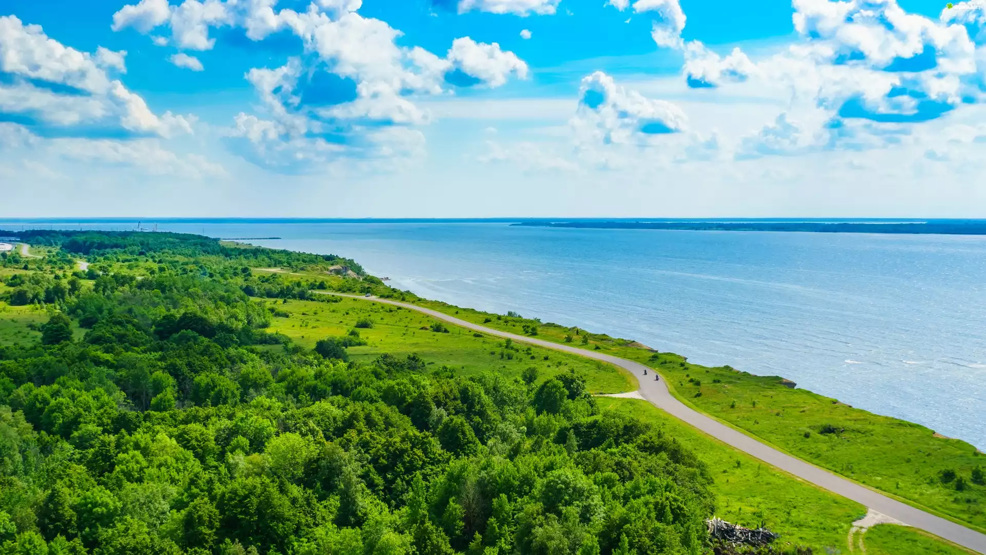 Zdjęcie Morze, Wybrzeże, Droga, Drzewa, Chmury
