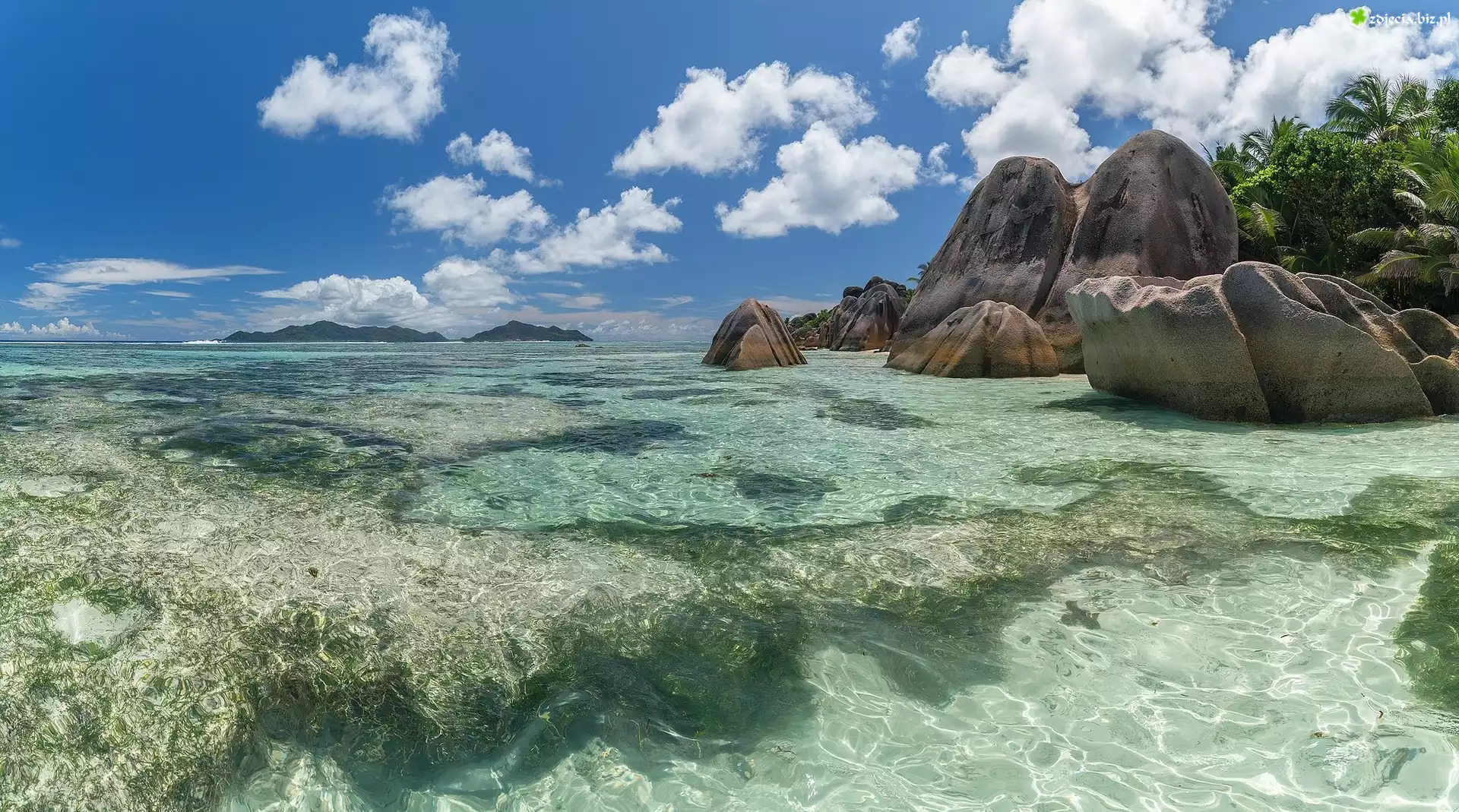 Zdjęcie Morze, Skały, Drzewa, Palmy