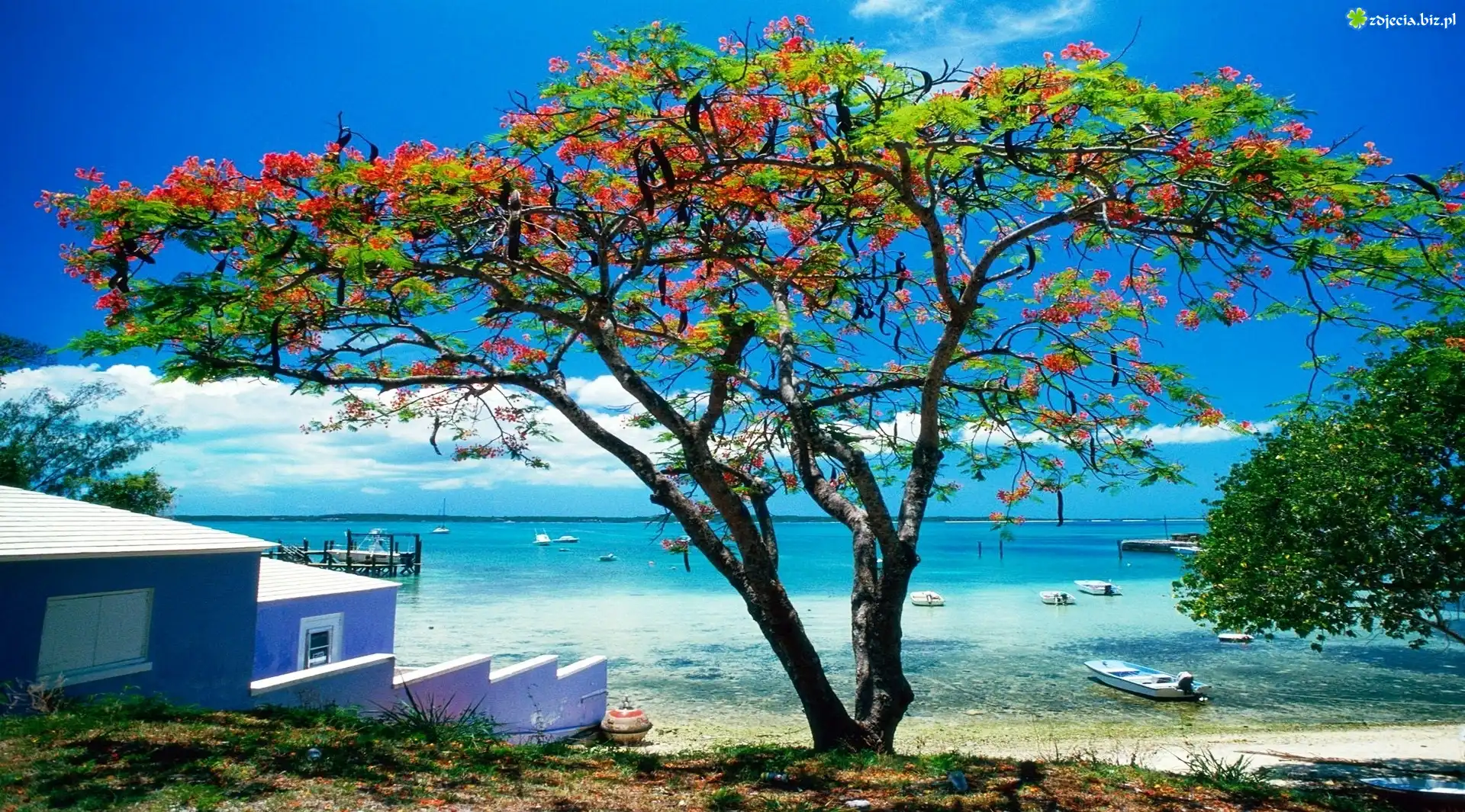 Zdjęcie Morze, Plaża, Kwitnące, Drzewo, Karaiby
