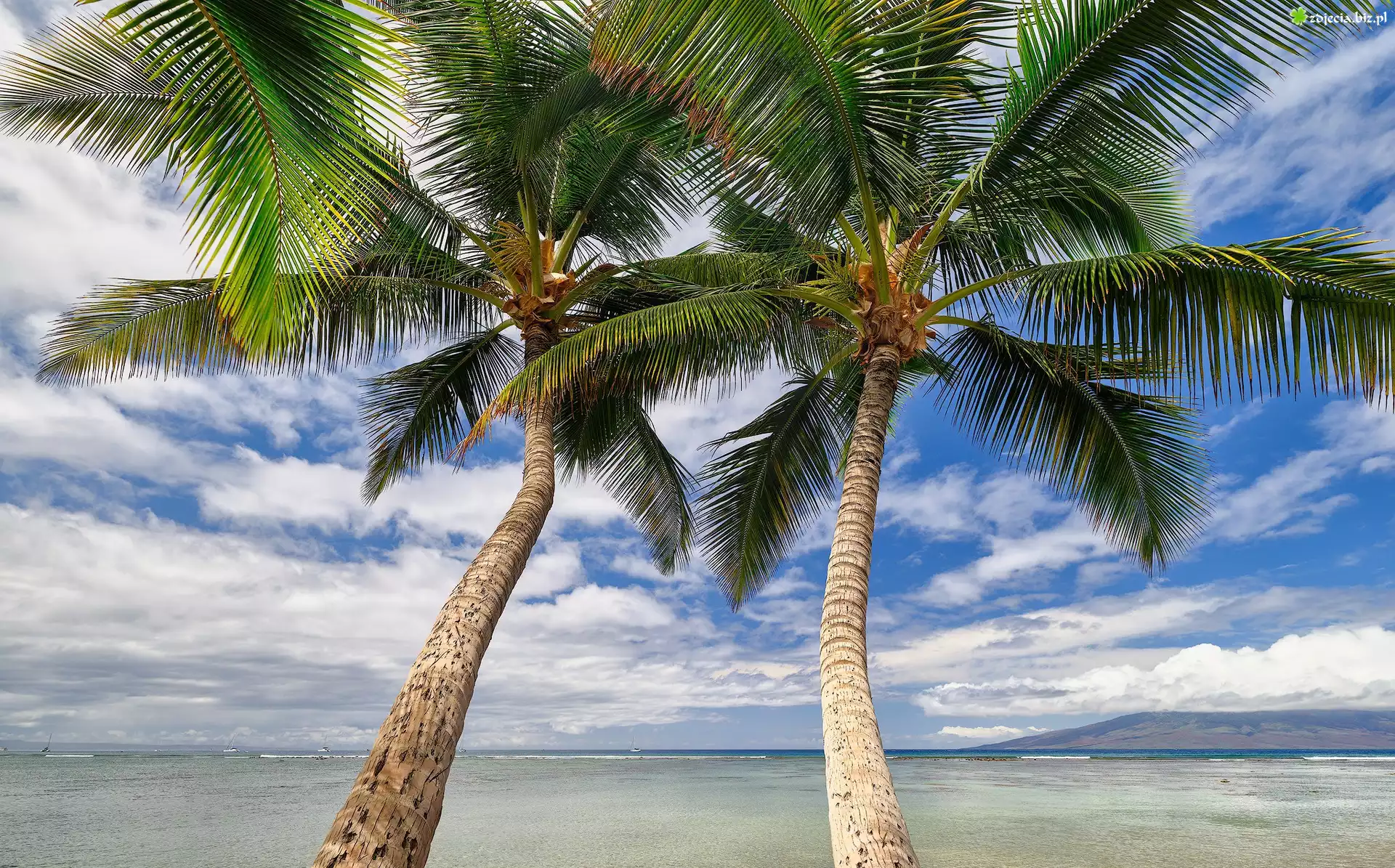 Zdjęcie Dwie, Palmy, Liście, Morze