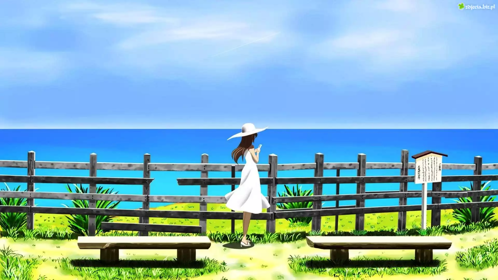 Zdjęcie Dziewczynka, Morze, Ławeczki