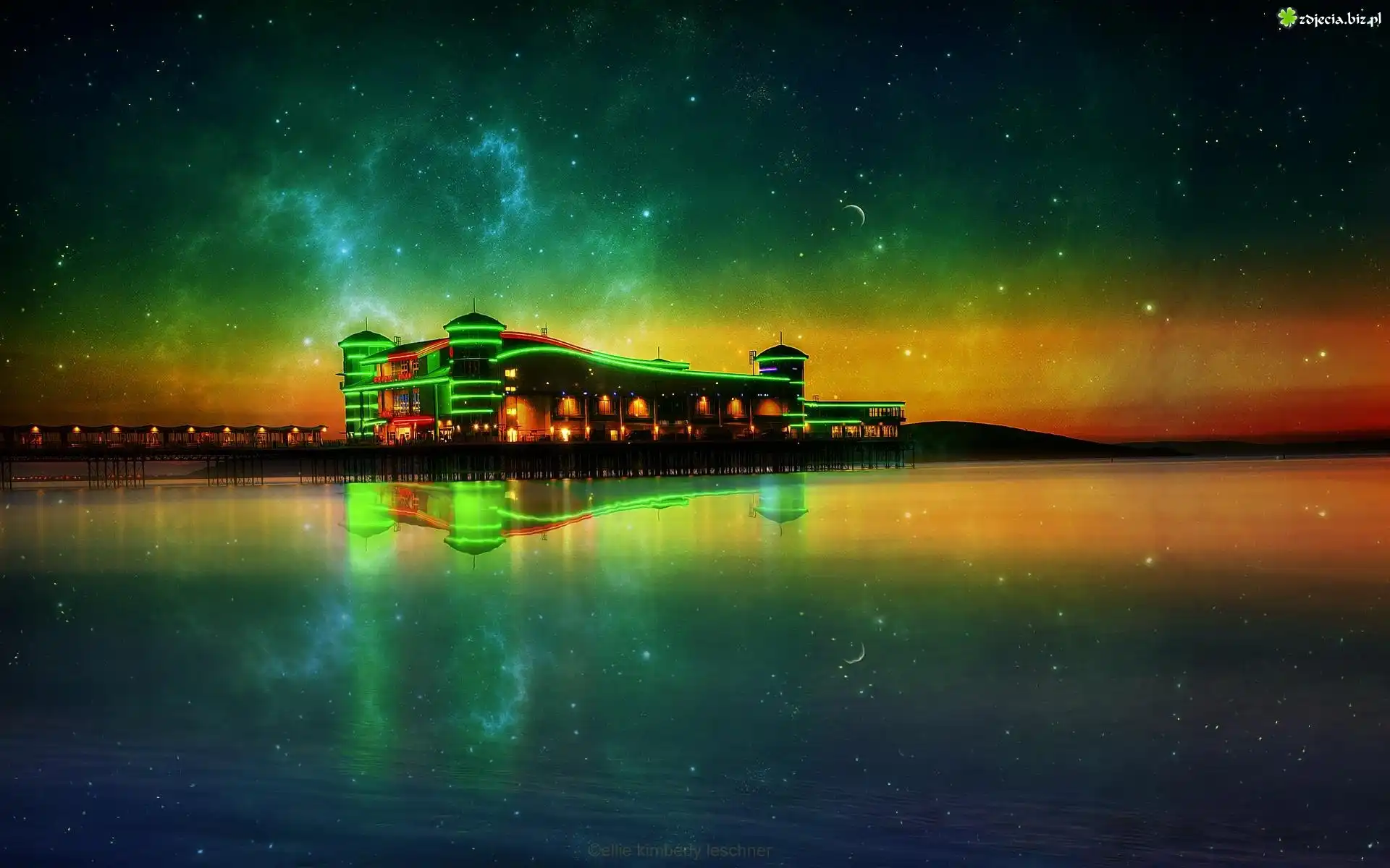 Zdjęcie Morze, Niebo, Gwiazdy, Budynek