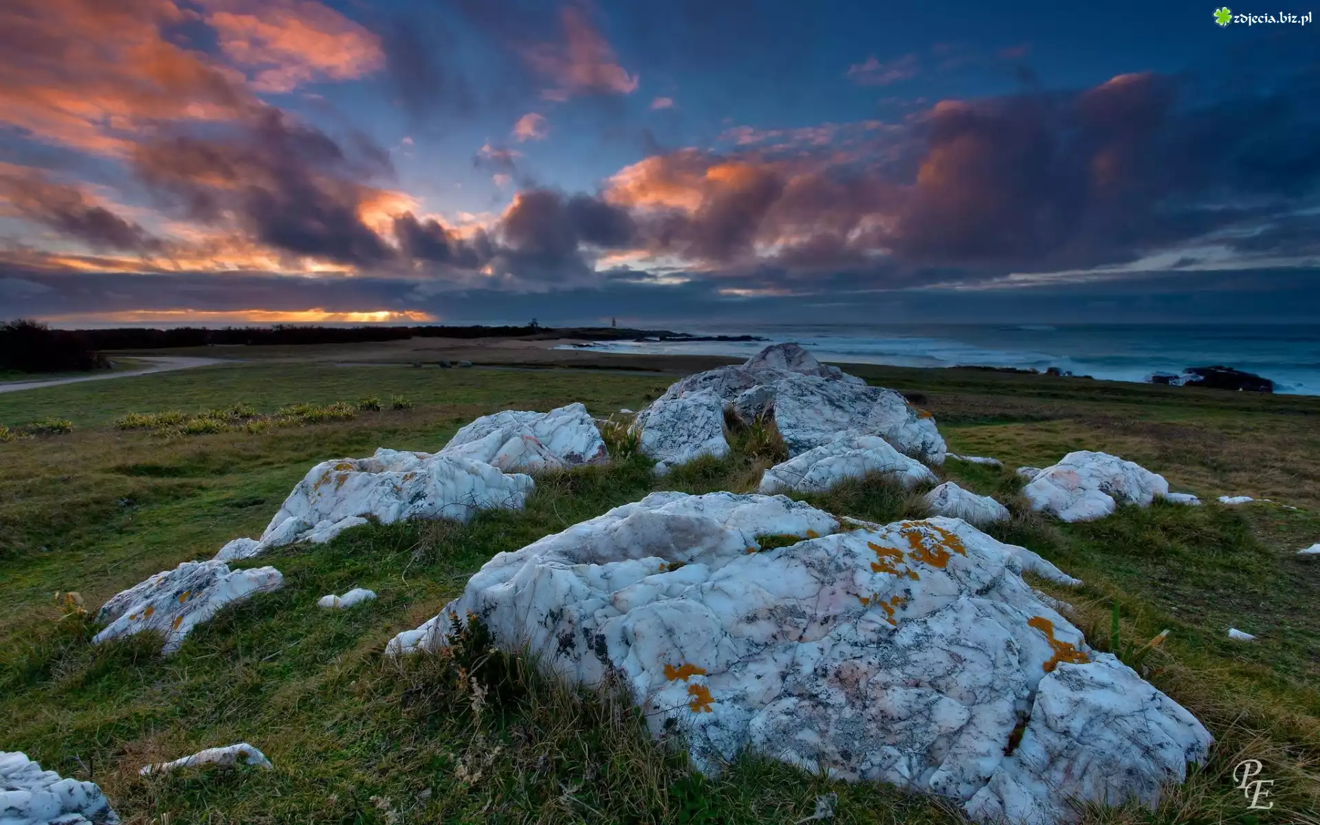 Zdjęcie Łąka, Kamienie, Droga, Morze, Chmury