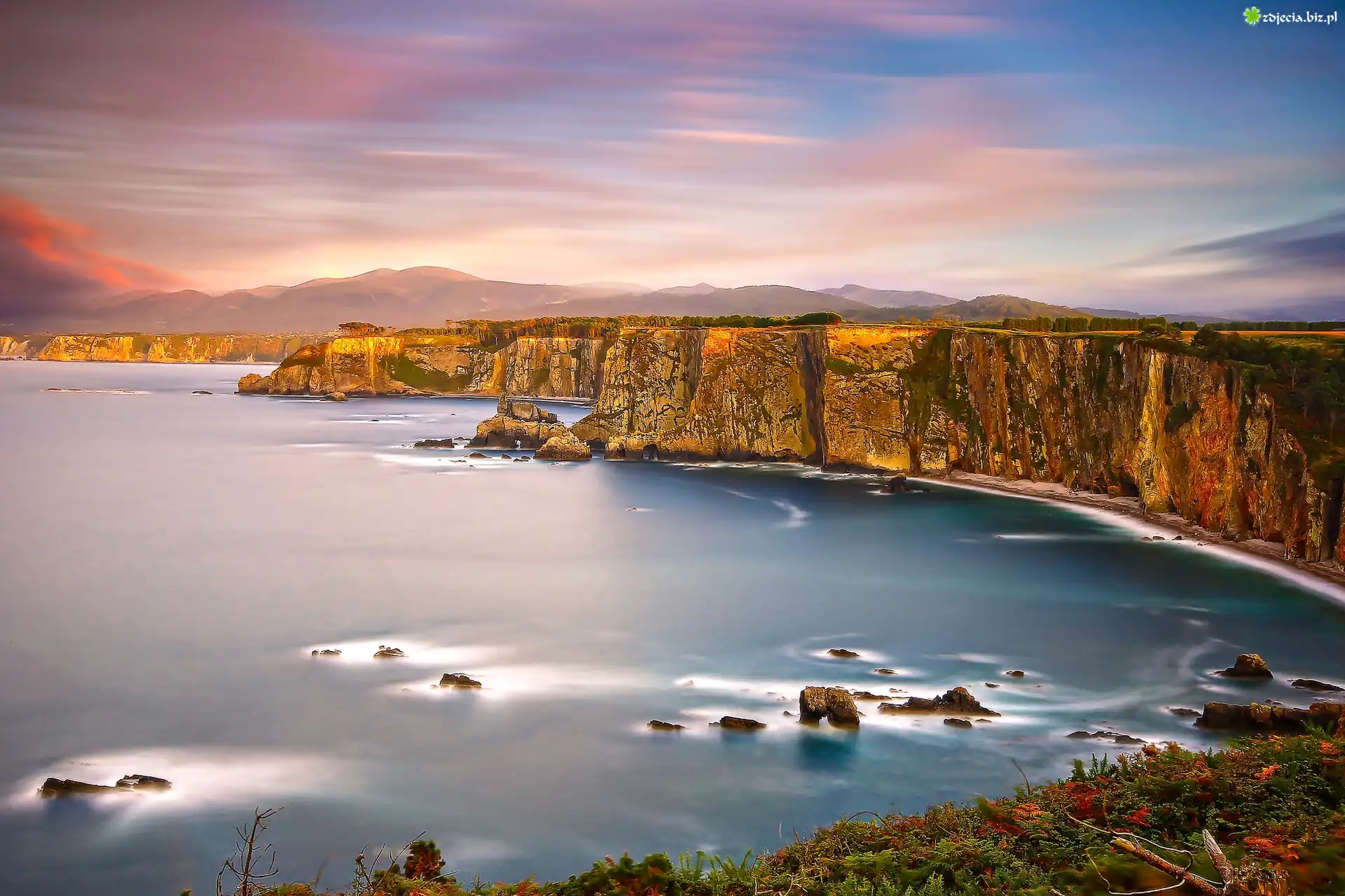 Zdjęcie, Morze, Wybrzeże, Klify, Świt