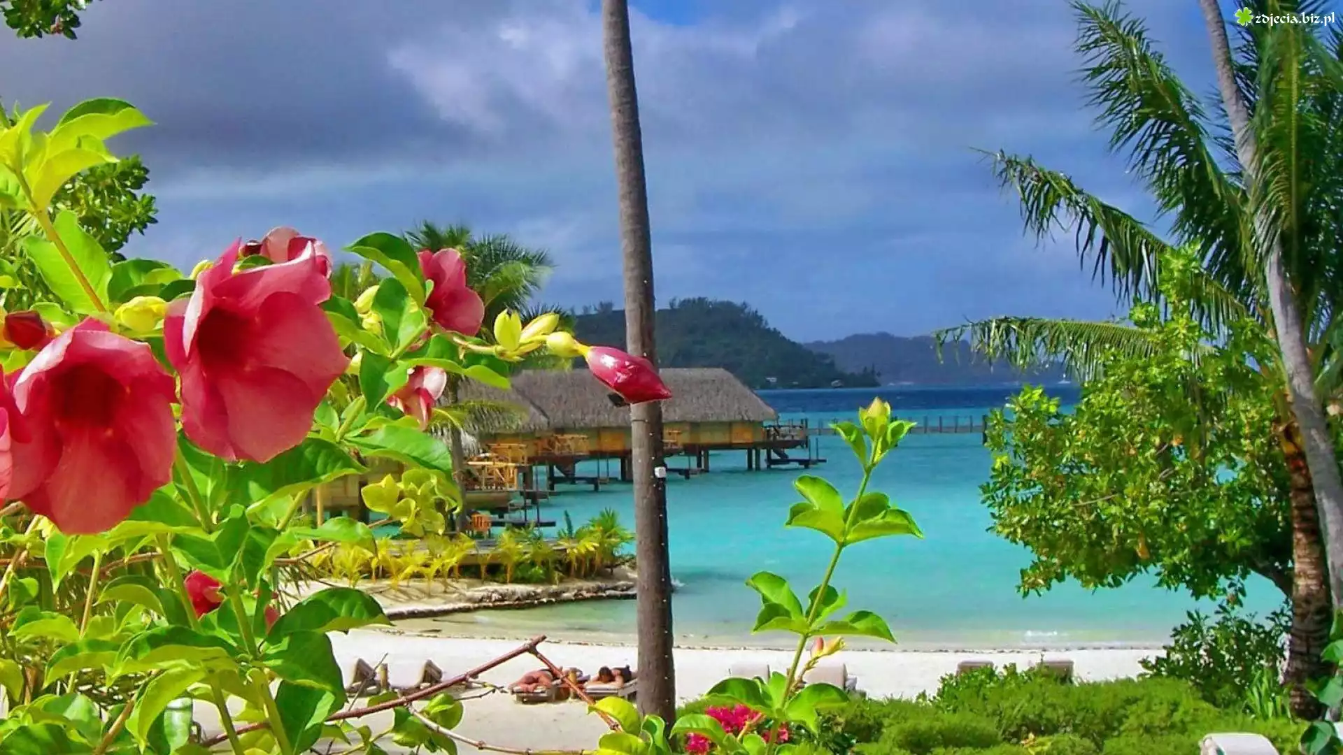 Zdjęcie Morze, Domki, Kwiaty, Bora