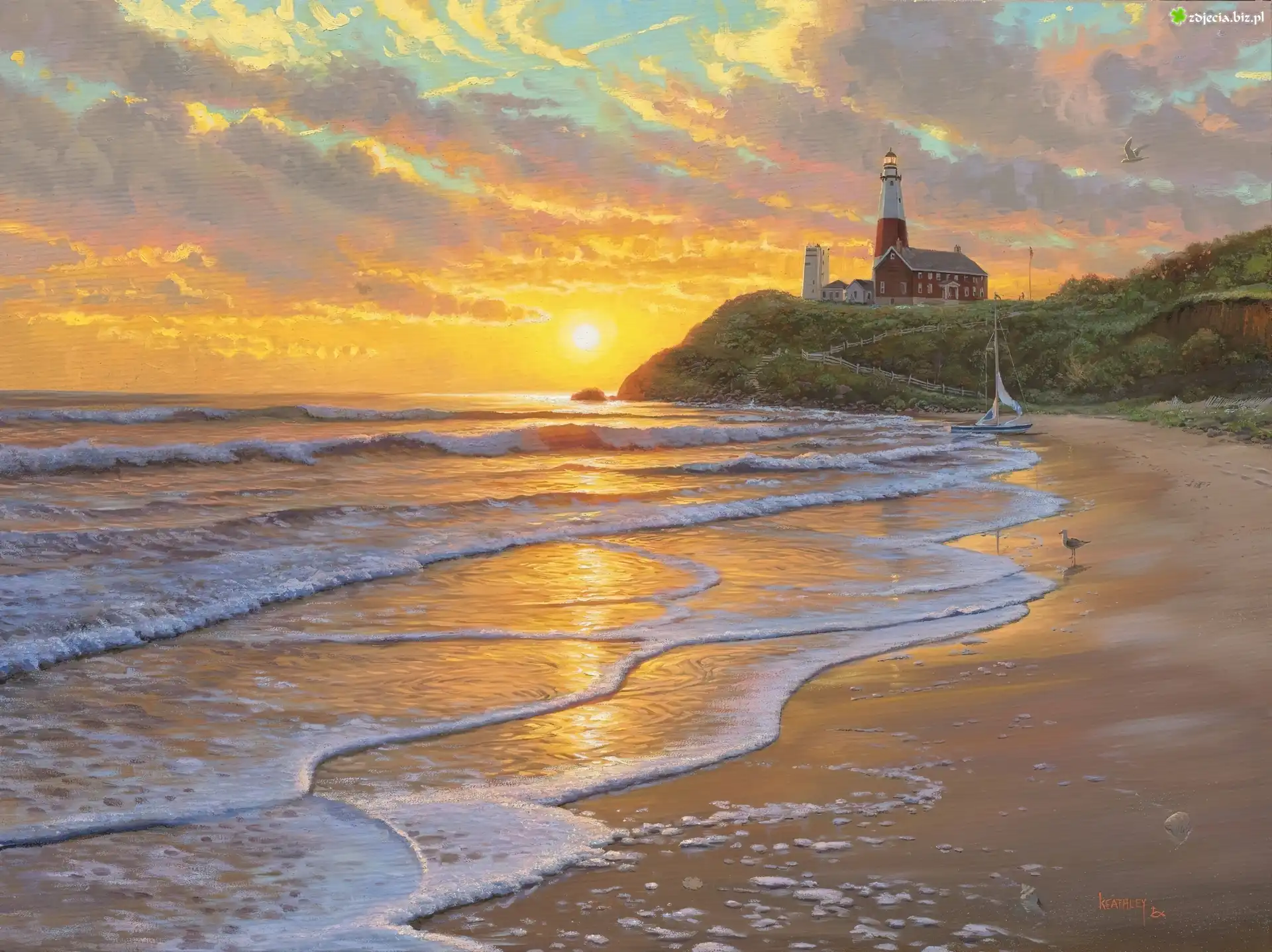 Zdjęcie Morze, Fale, Plaża, Latarnia, Morska