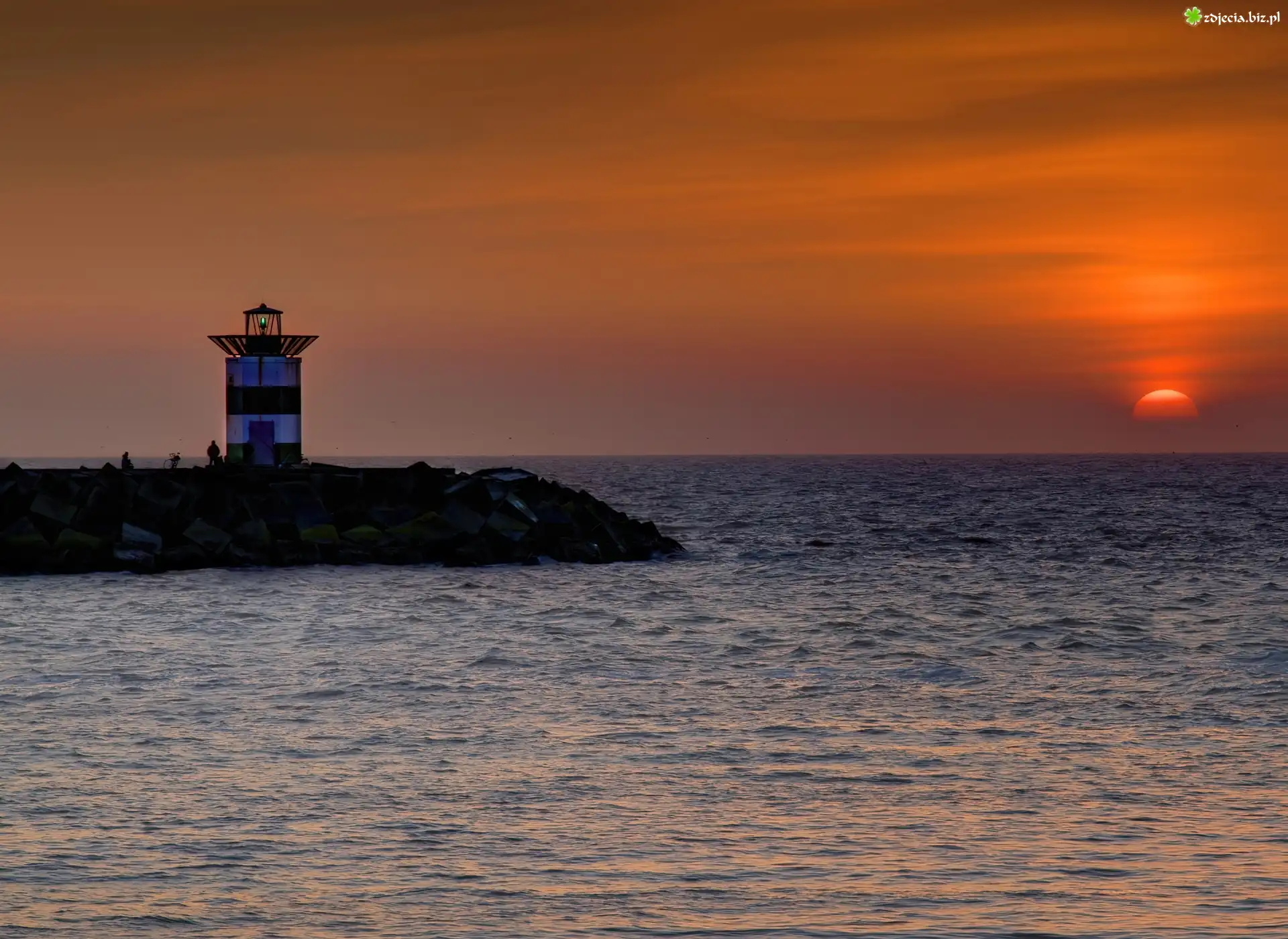 Zdjęcie Morze, Zachód Słońca, Latarnia Morska
