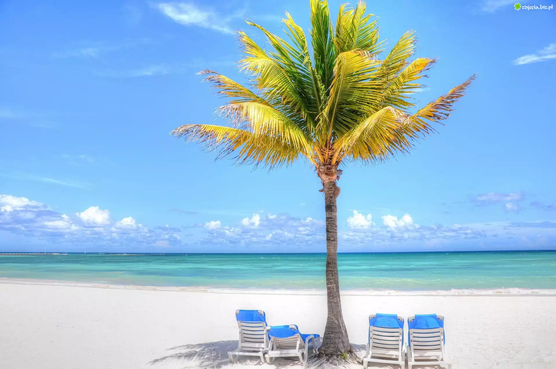 Zdjęcie, Morze, Palma, Leżaki, Plaża, Wakacje
