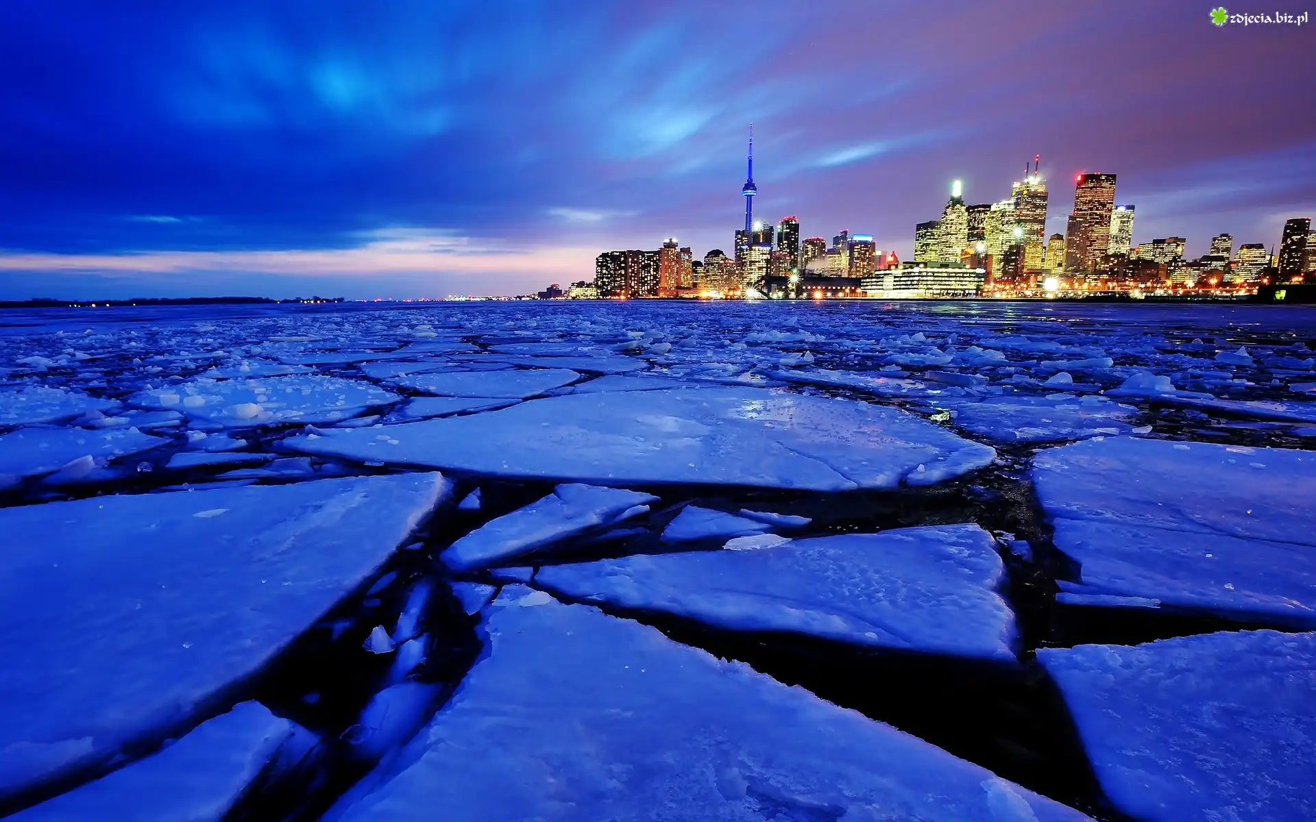 Zdjęcie Morze, Zima, Kra, Miasto, Nocą