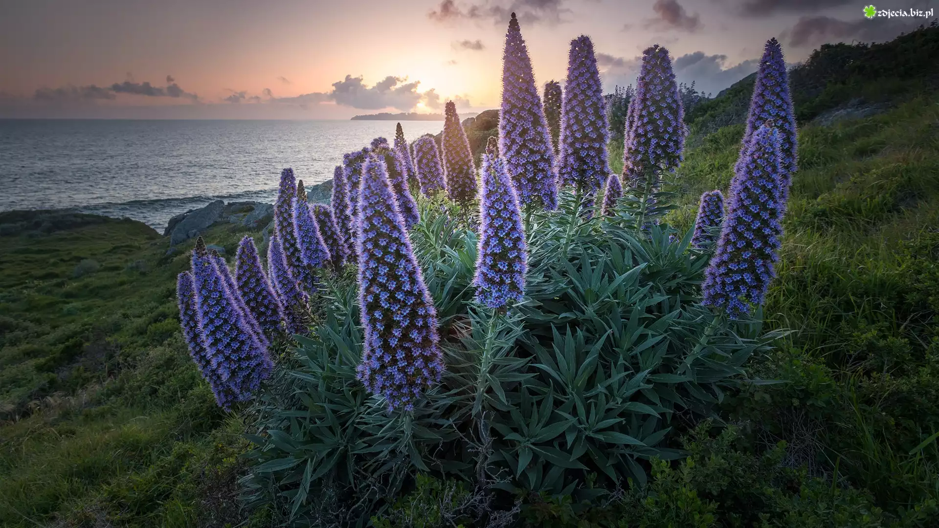 Zdjęcie Morze, Kwiaty, Żmijowiec wspaniały
