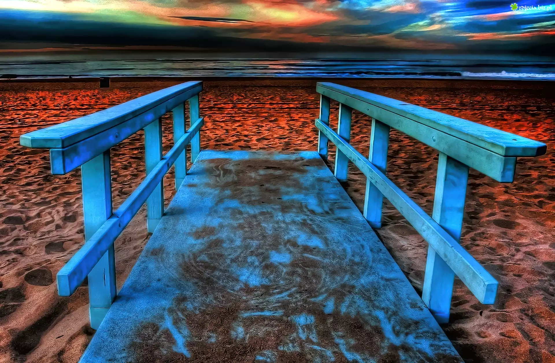 Zdjęcie Morze, Plaża, Niebieski, Mostek