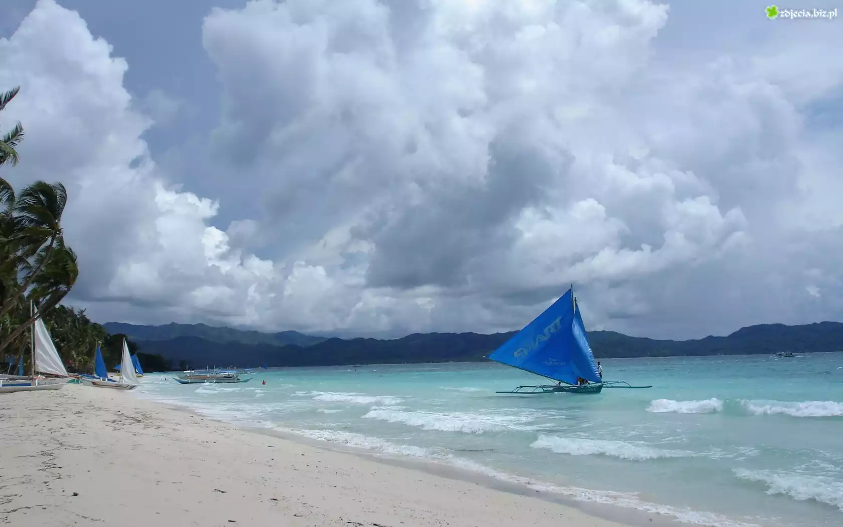 Zdjęcie Morze, Plaża, Łodzie, Góry