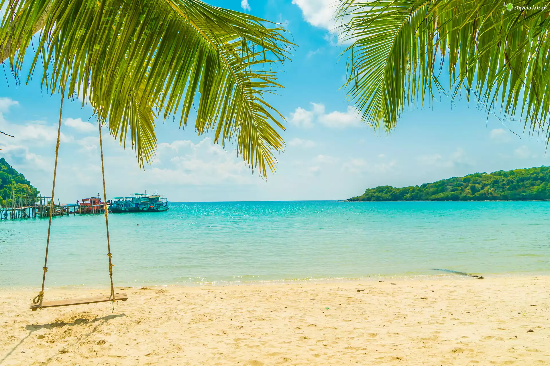 Zdjęcie Palmy, Huśtawka, Plaża, Morze