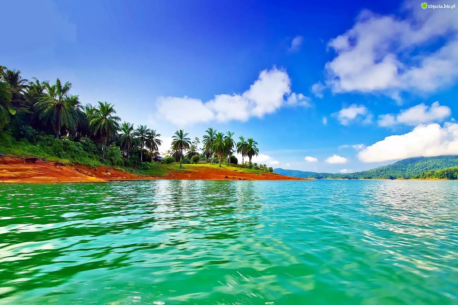 Zdjęcie, Morze, Wybrzeże, Palmy, Tropiki