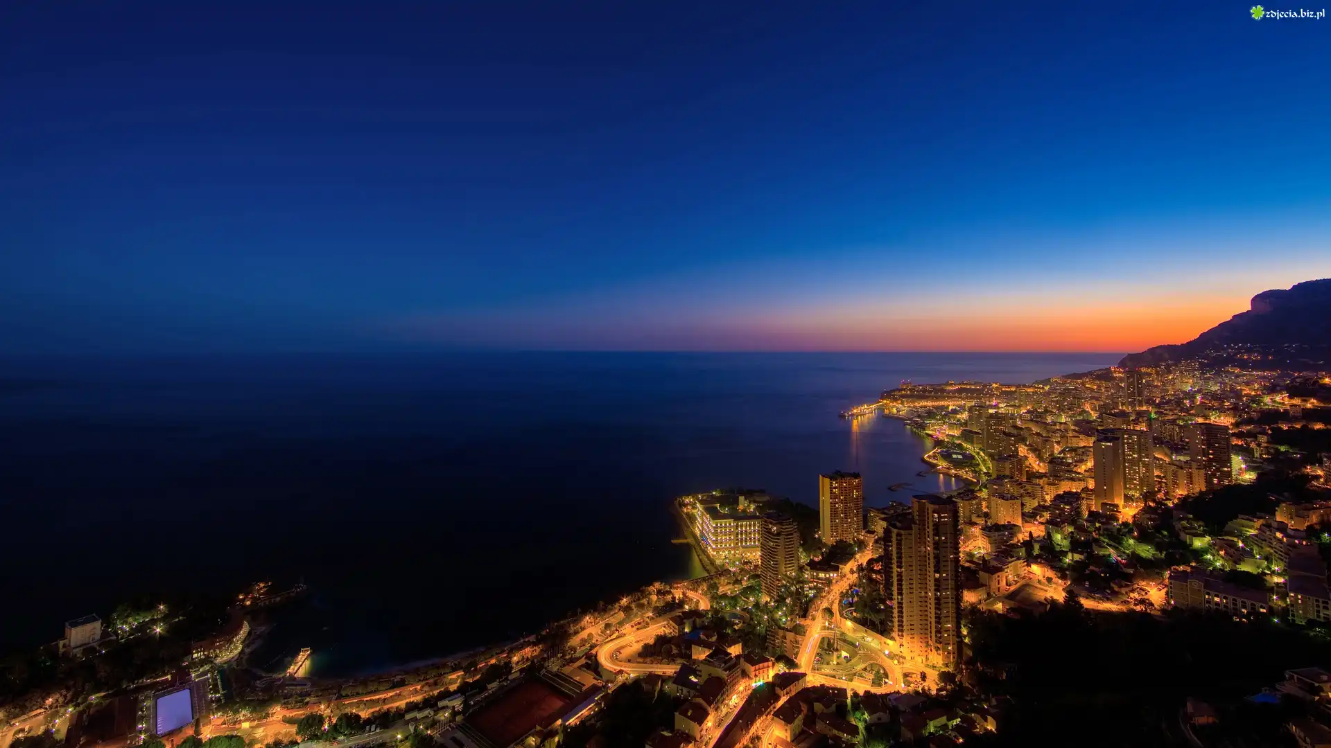 Zdjęcie Morze, Zachodzące, Słońce, Panorama, Monako