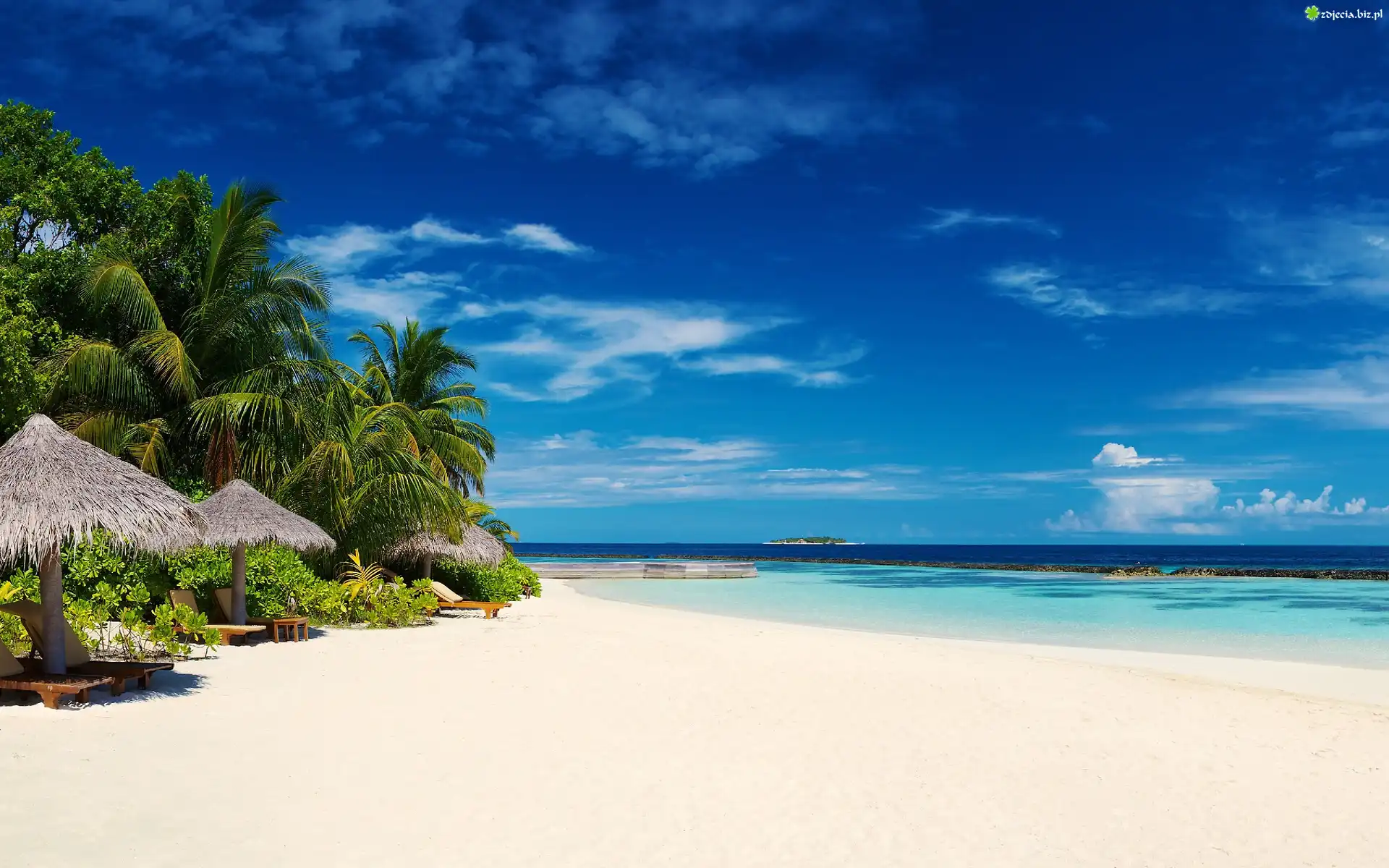 Zdjęcie Morze, Niebo, Plaża, Palmy