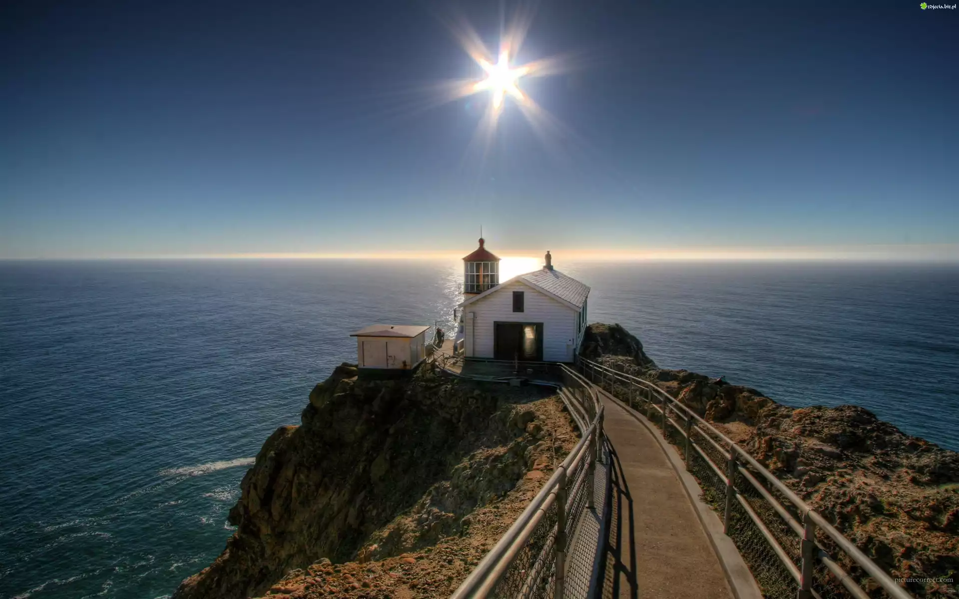 Zdjęcie Morze, Klify, Latarnia, Morska, Promienie, Słońca
