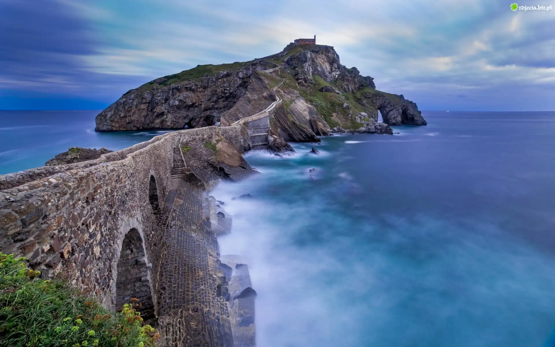 Zdjęcie Hiszpania, Morze, Wyspa, Skały, Kamienny, Most, Kaplica, Pustelnia