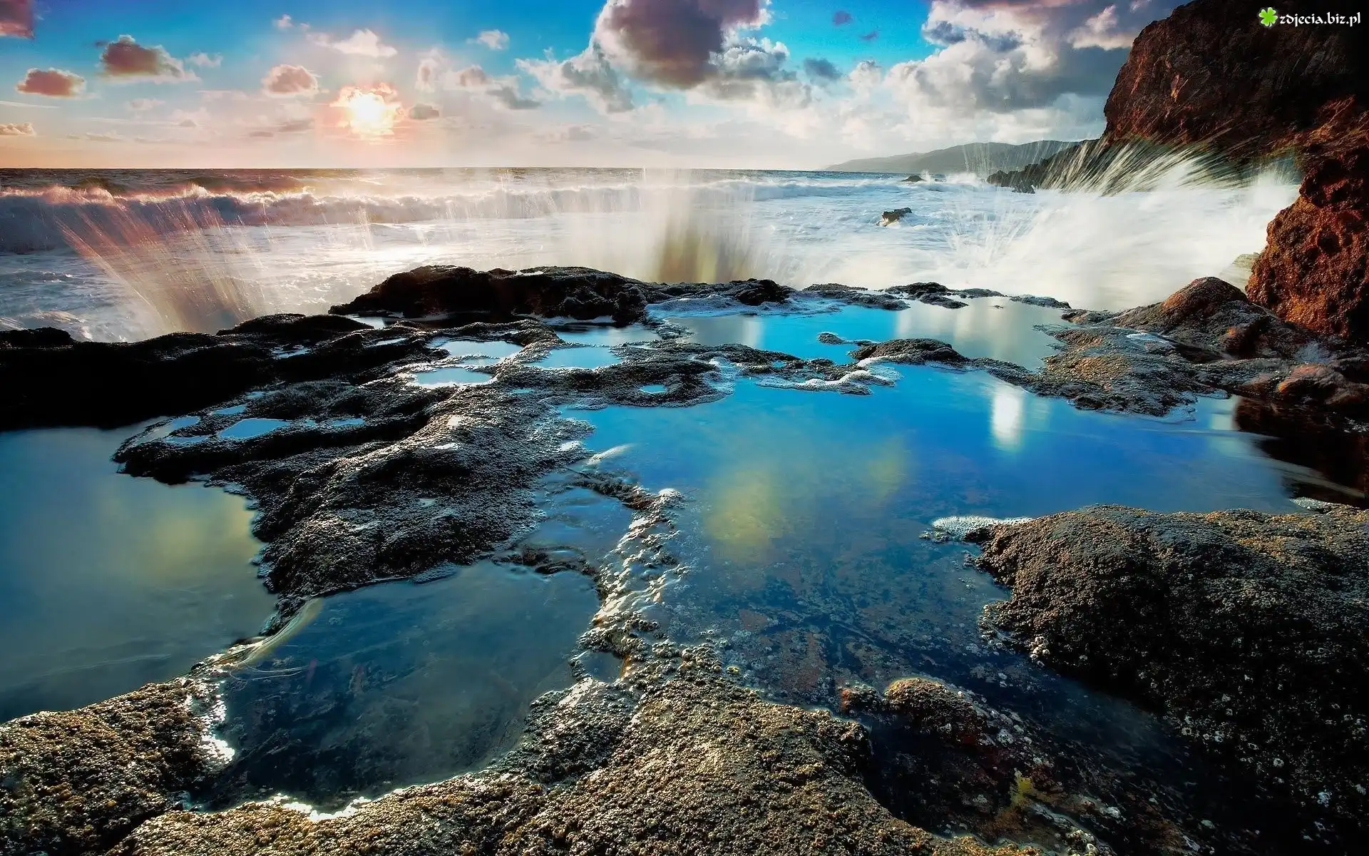 Zdjęcie, Morze, Fale, Skały, Chmury