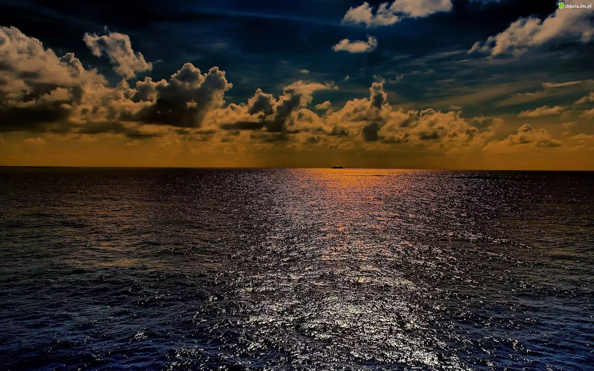 Zdjęcie, Morze, Niebo, Chmury, Zachód, Słońca, Odbicie