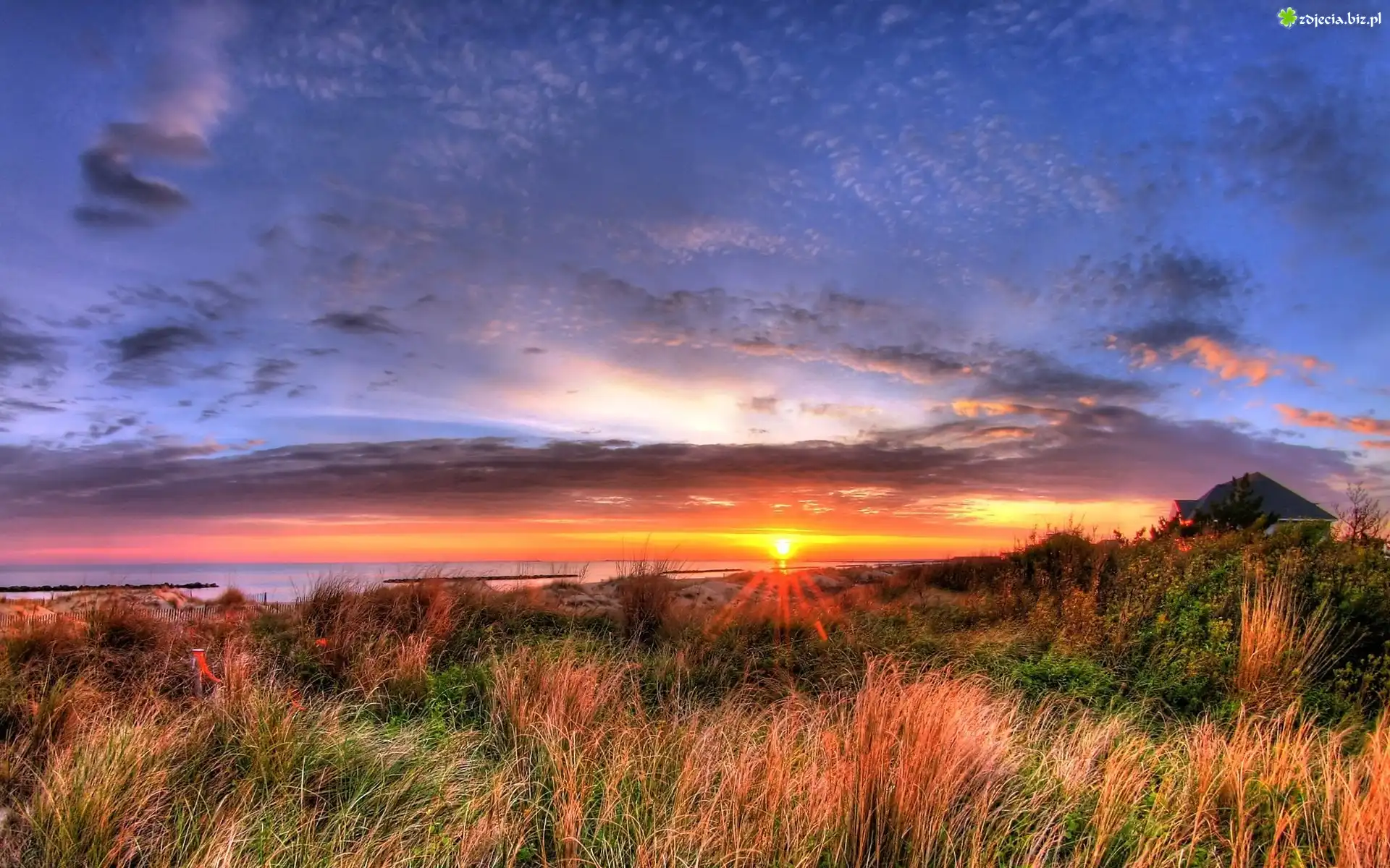 Zdjęcie Morze, Promienie, Słońca, Trawa