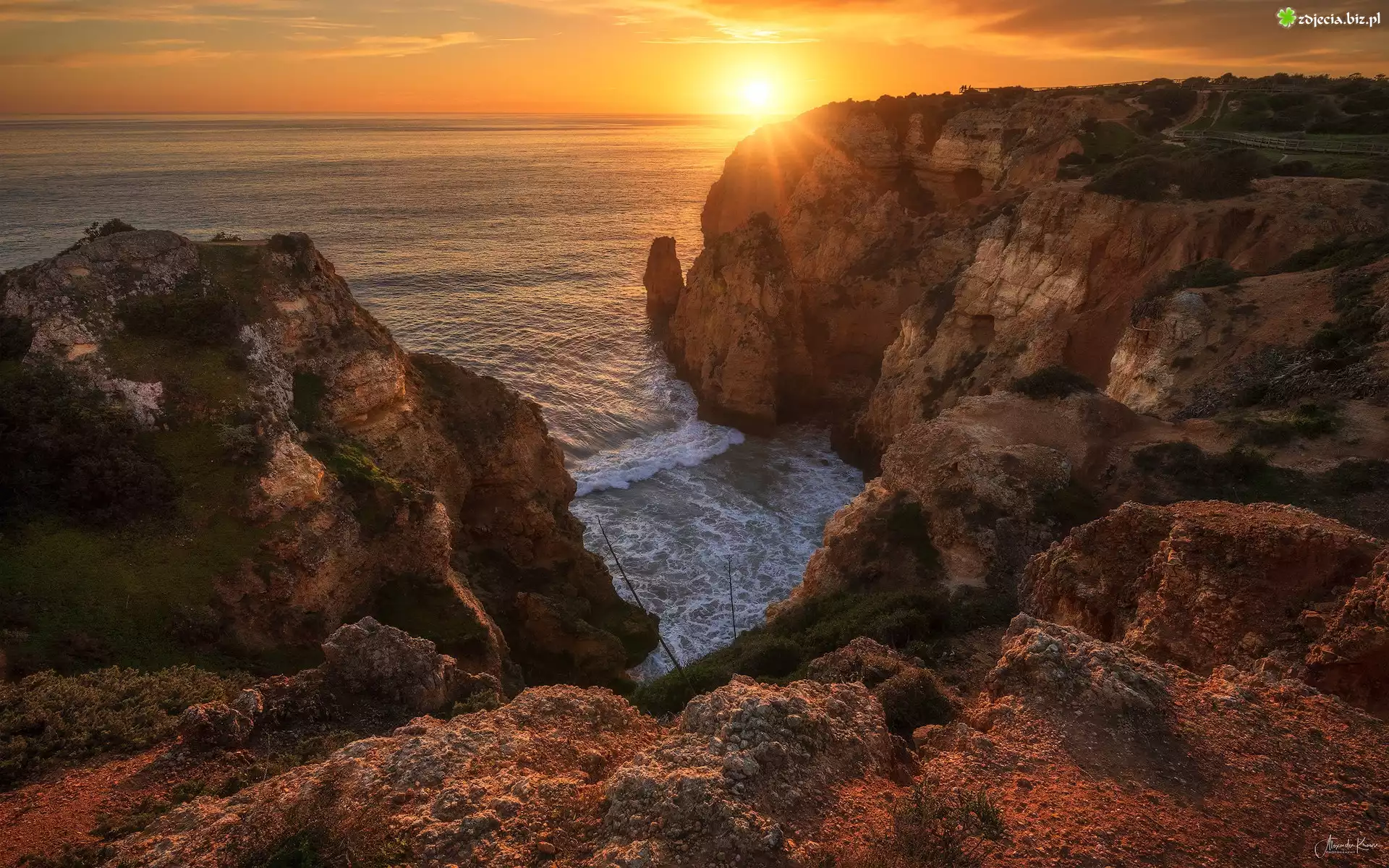 Zdjęcie Portugalia, Algarve, Skały, Morze, Wschód słońca