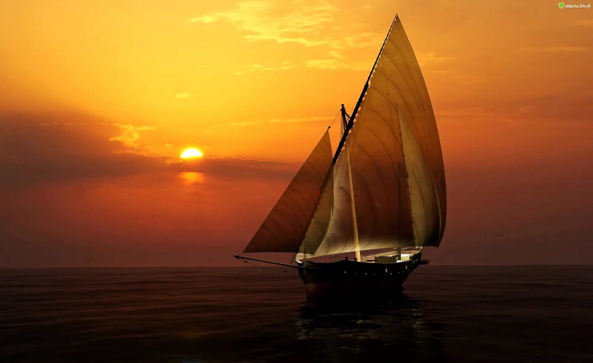 Zdjęcie Morze, Zachód, Słońca, Żaglówka