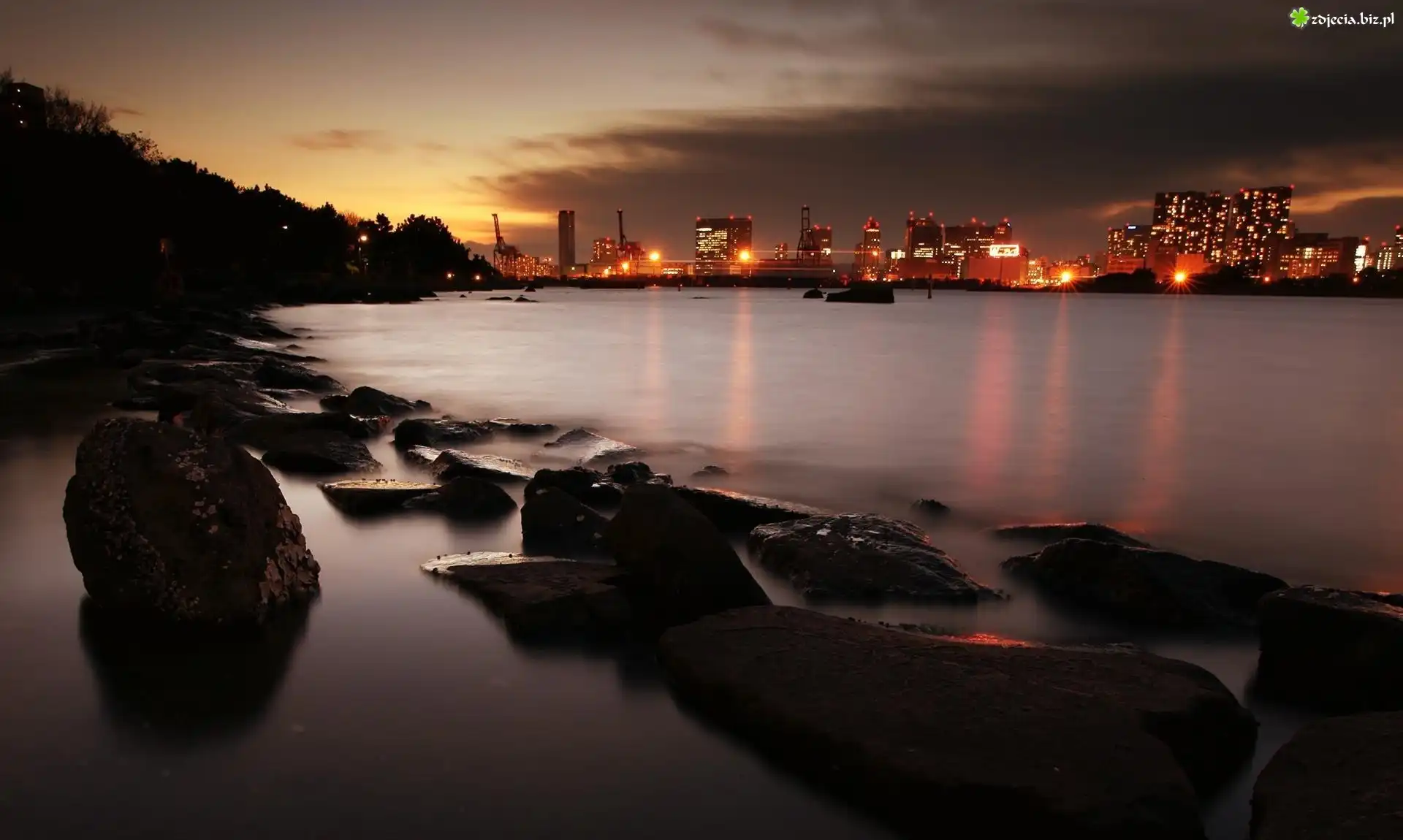 Zdjęcie Morze, Kamienie, Zachód Słońca, Japonia