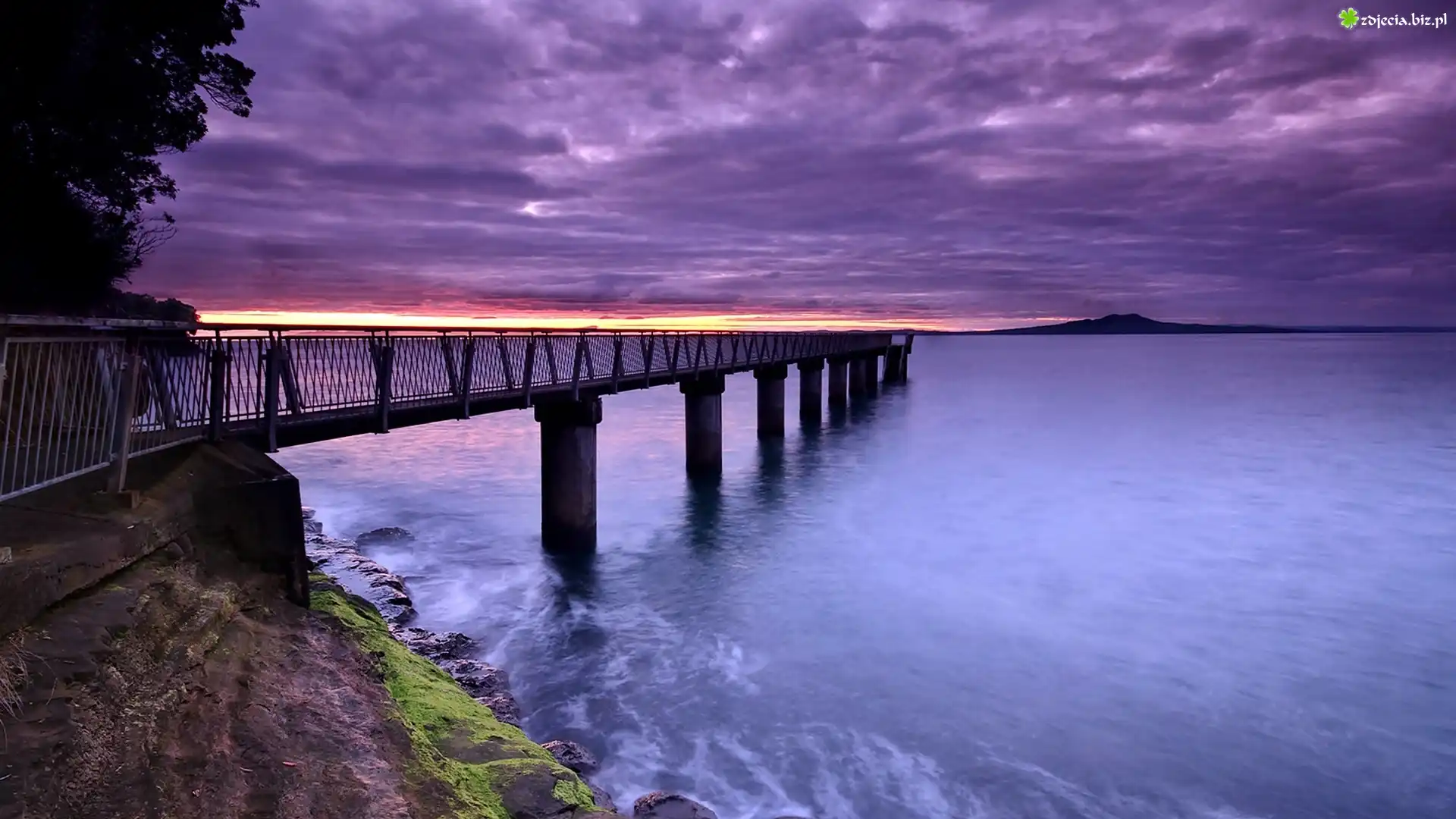 Zdjęcie Morze, Molo, Zachód, Słońca, Chmury
