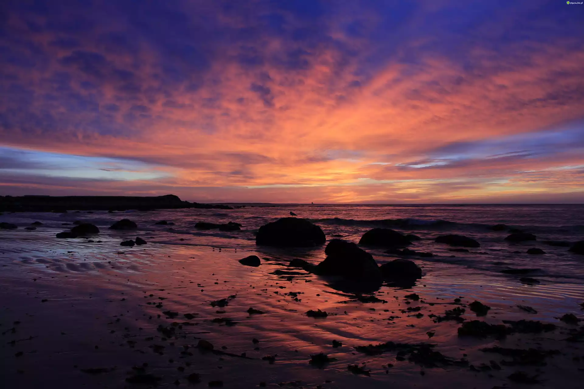 Zdjęcie Morze, Niebo, Zachód, Słońca, Kamienie