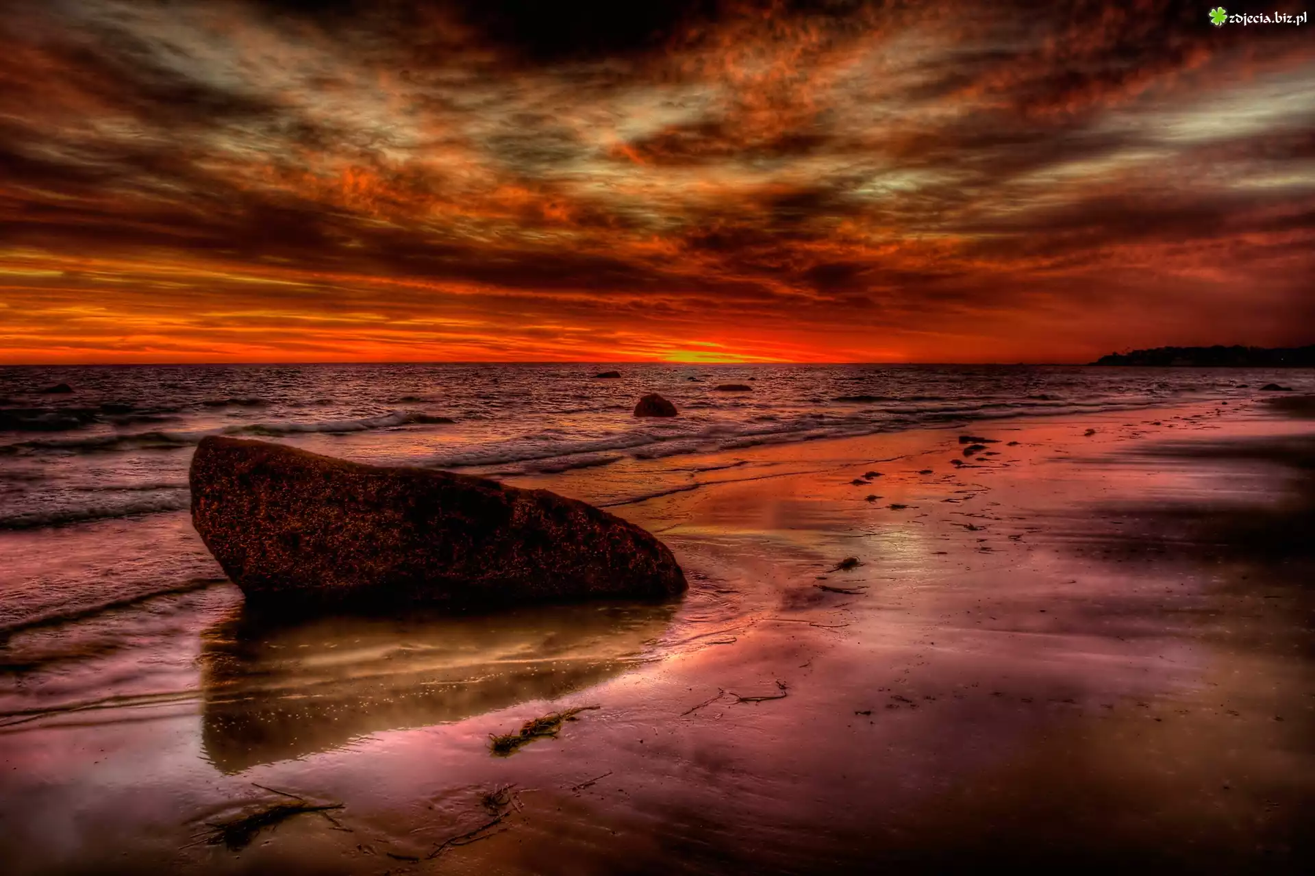 Zdjęcie Morze, Plaża, Zachód, Słońca, Głaz