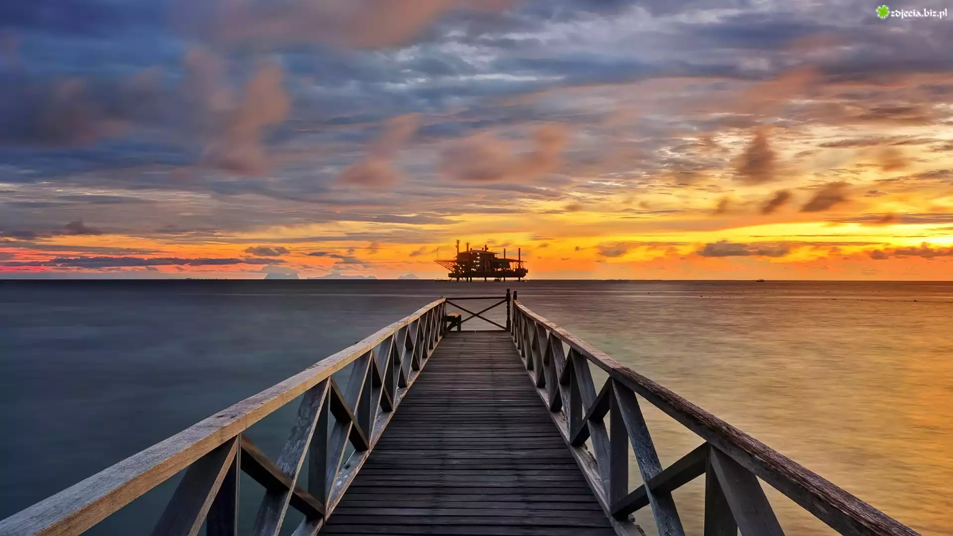 Zdjęcie Morze, Zachód, Słońca, Pomost