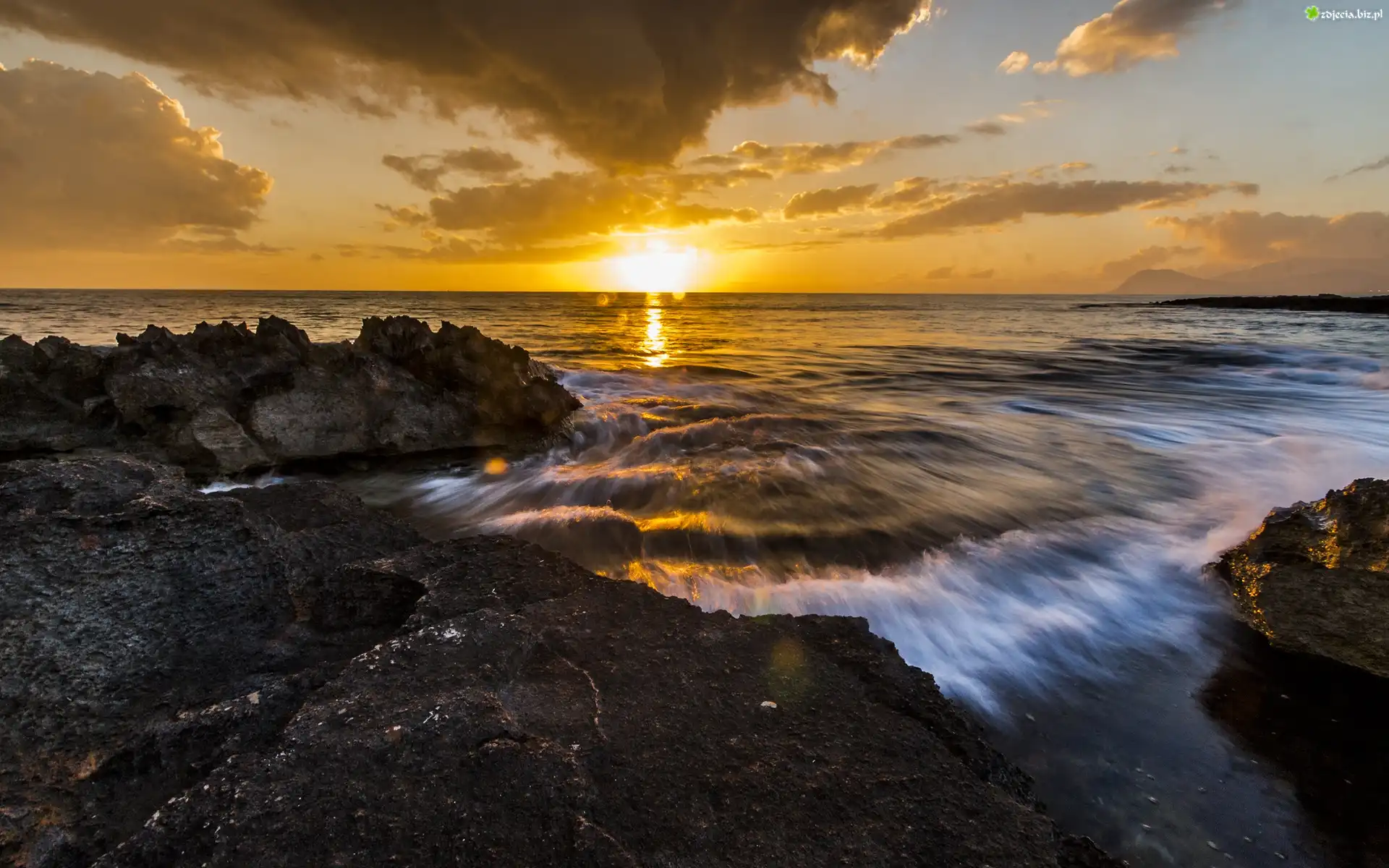Zdjęcie Morze, Zachód słońca, Skały